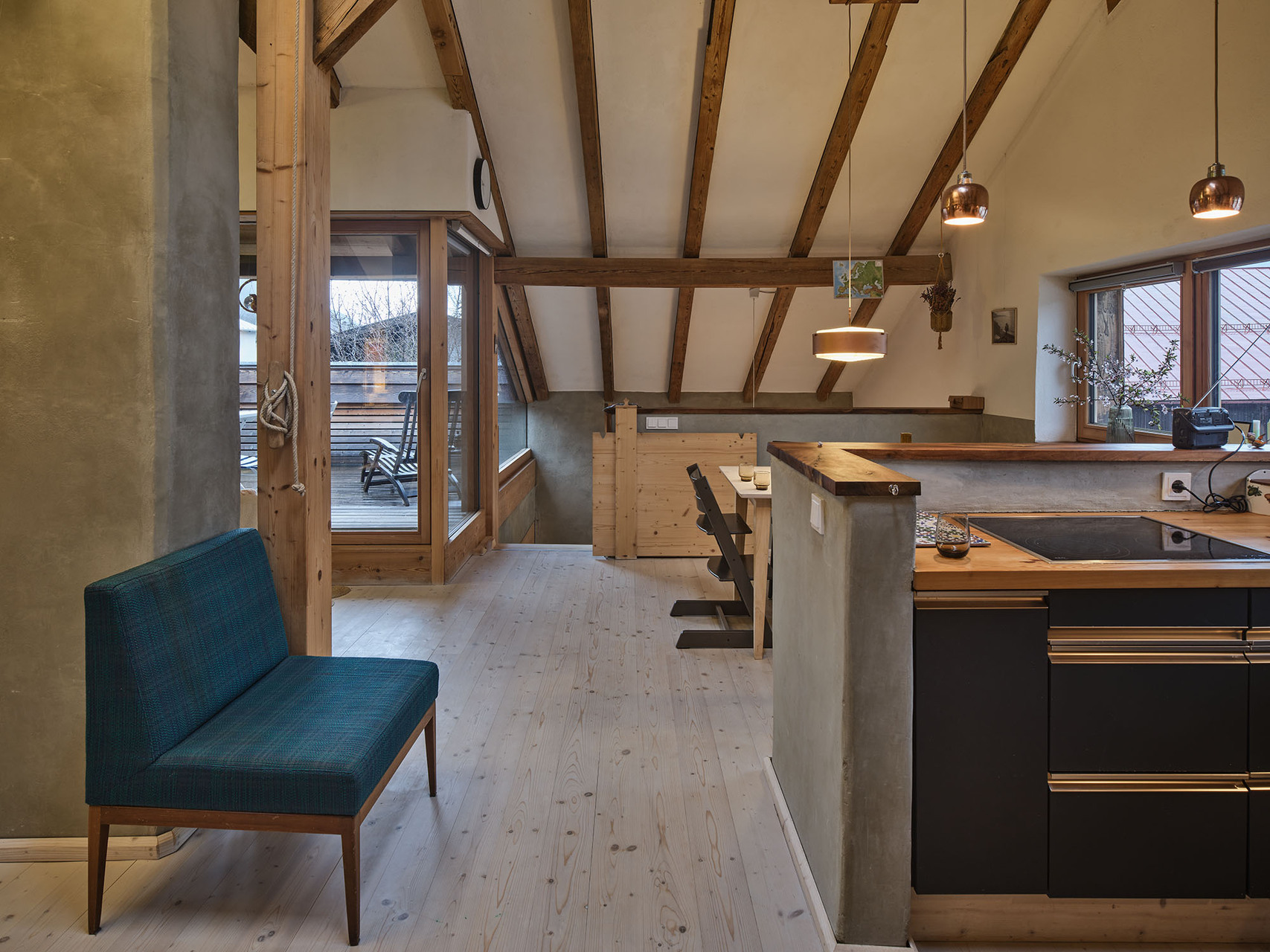 Für den Nassbereich ist Lehm allerdings nicht geeignet, er ist wasserlöslich. Dort haben wir Kalk verwendet. Das war aufwendig, hat sich aber gelohnt. Regionalität ist uns wichtig. Die Strohballen mussten wir allerdings aus dem Burgenland beziehen, in Tirol wird Stroh meist zu großen, runden Ballen gepresst, die sich nicht verbauen lassen. Sieben Tonnen Stroh stecken in unseren vier Wänden, ein ganzer Sattelschlepper.