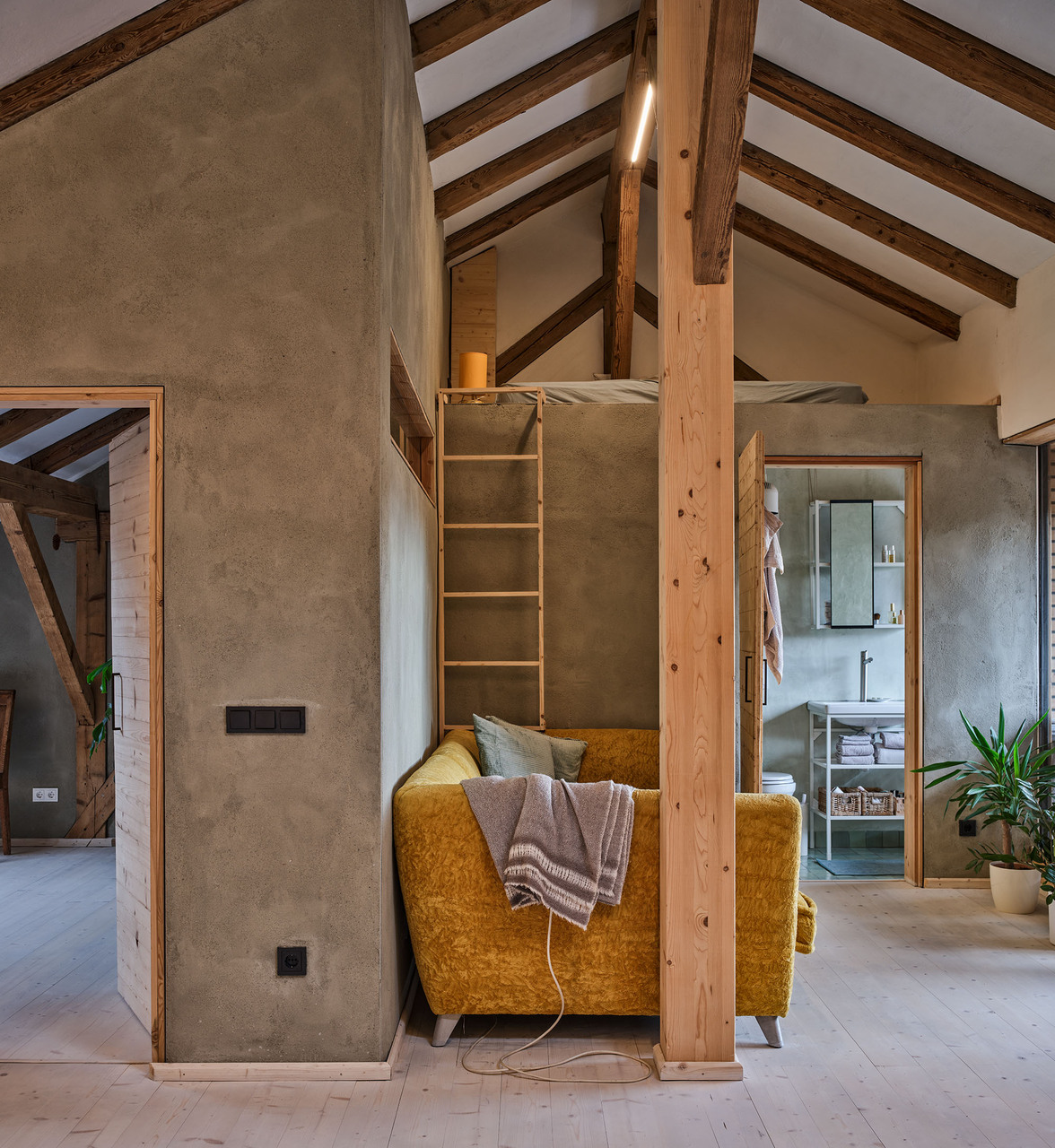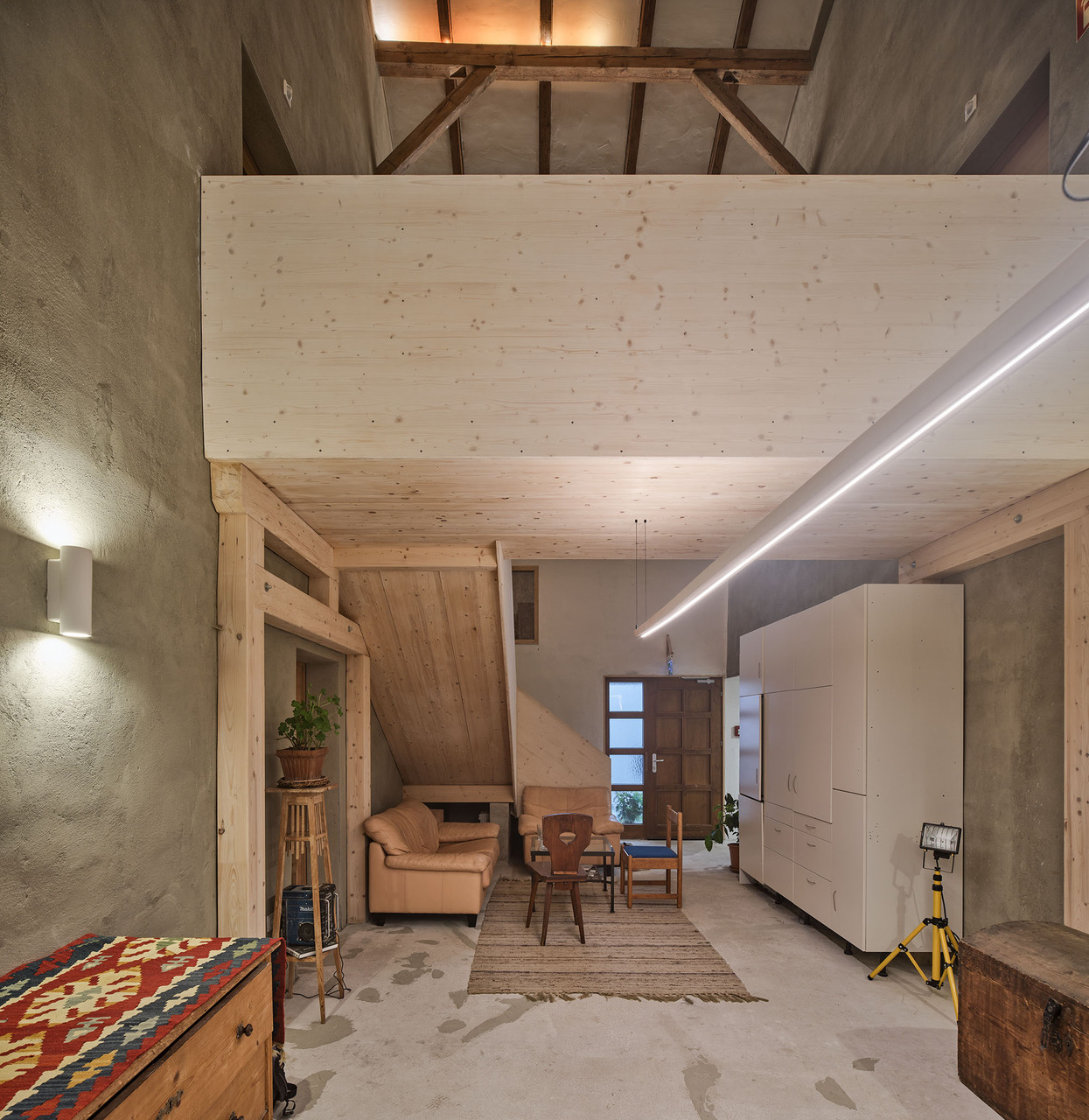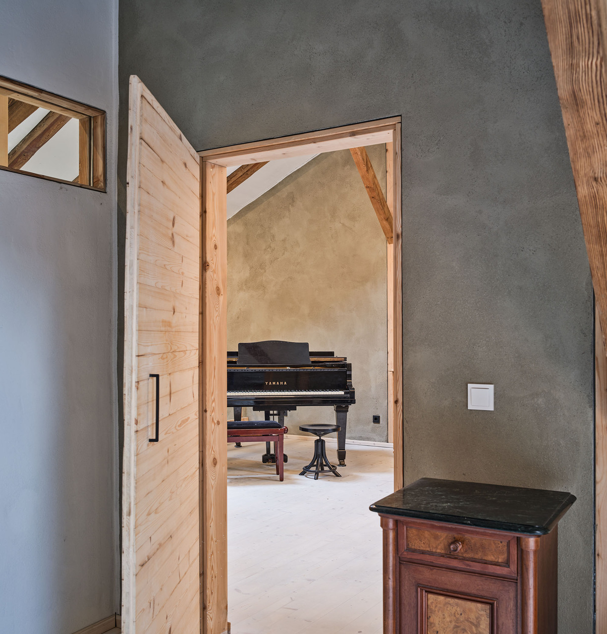 Wenn immer möglich, haben wir zu ökologischen Materialien wie Holz, Stroh, Lehm und Kalk gegriffen. Das war nicht immer einfach. Den Lehm haben wir selbst aufbereitet und zu Lehmputz verarbeitet. Wir haben ihn von einer rund zehn Kilometer entfernten Schottergrube umsonst bezogen. Dort fällt er als Abfallprodukt an. Der Geschäftsführer war anfangs irritiert, bald aber ganz angetan von unserem Vorhaben.