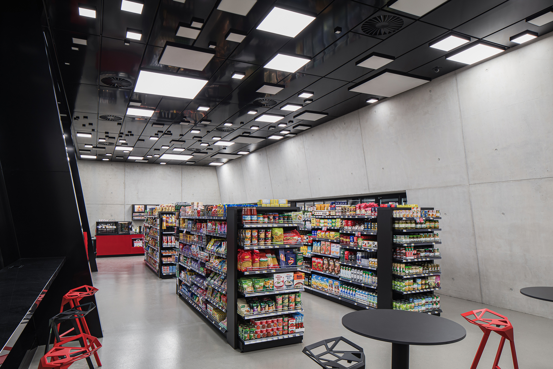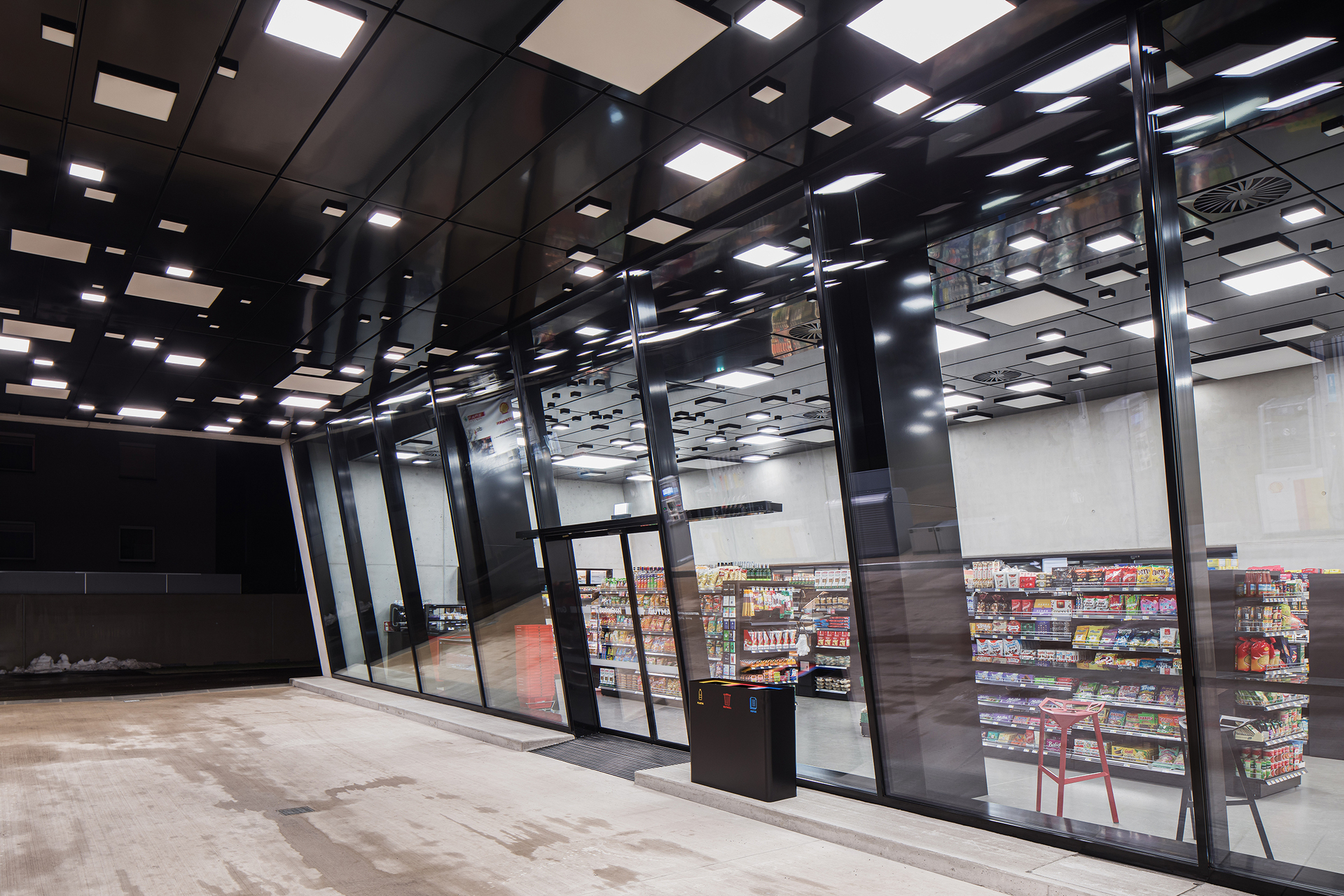 Nach Prüfung von Alternativen fiel die Wahl auf Grund des vorhandenen Potentials auf eine Grundwasserwärmepumpe, welche sowohl zum Heizen als auch zur Raumkühlung verwendet werden kann, und die des Weiteren auch die gesamte Gewerbekühlung des Tankstellenshops (Kühlzellen sowie Kühlverkaufsregale) versorgt. Auf Außengeräte für die Kühlung konnte so komplett verzichtet werden.
