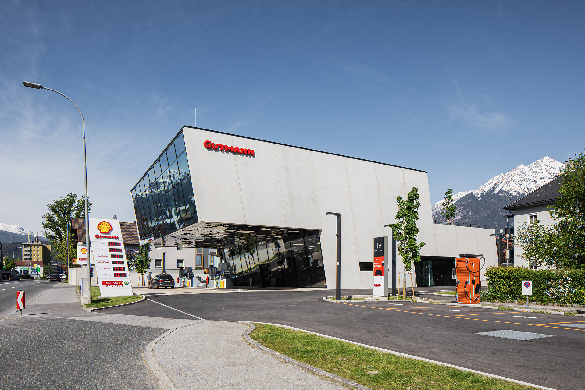 - Das Gebäudetechnikkonzept wurde von Gutmann Energiesysteme, einem Tochterunternehmen der Fa. Gutmann, entwickelt und setzte sich zum Ziel, Tankstelle und Bürotrakt mit erneuerbaren Energiequellen zu versorgen und innovative Technologien zu verwenden.
