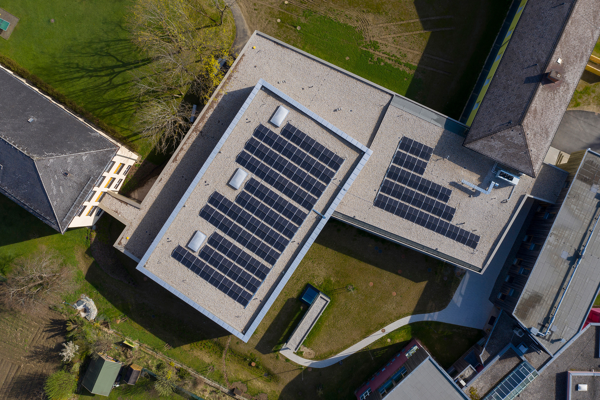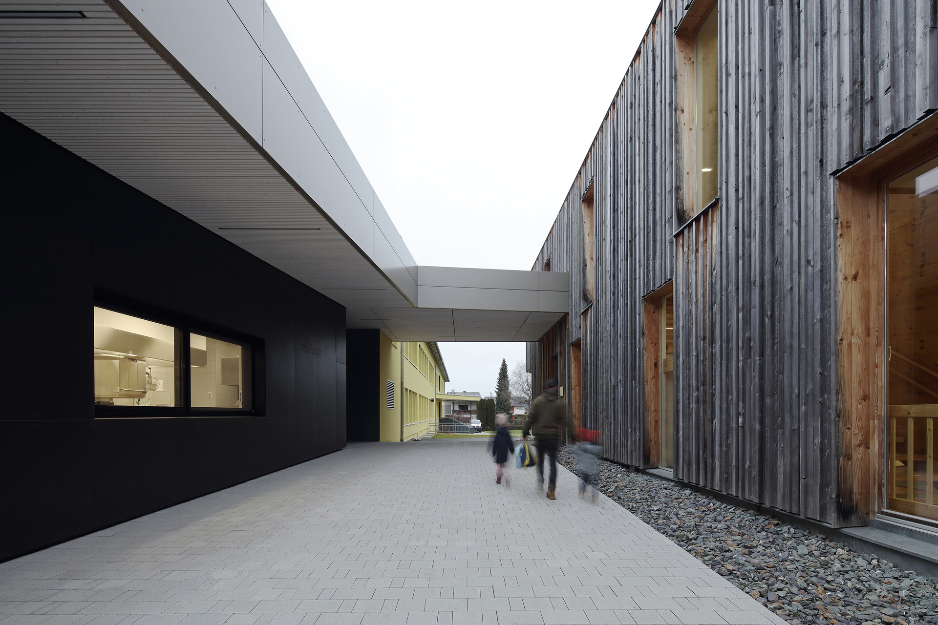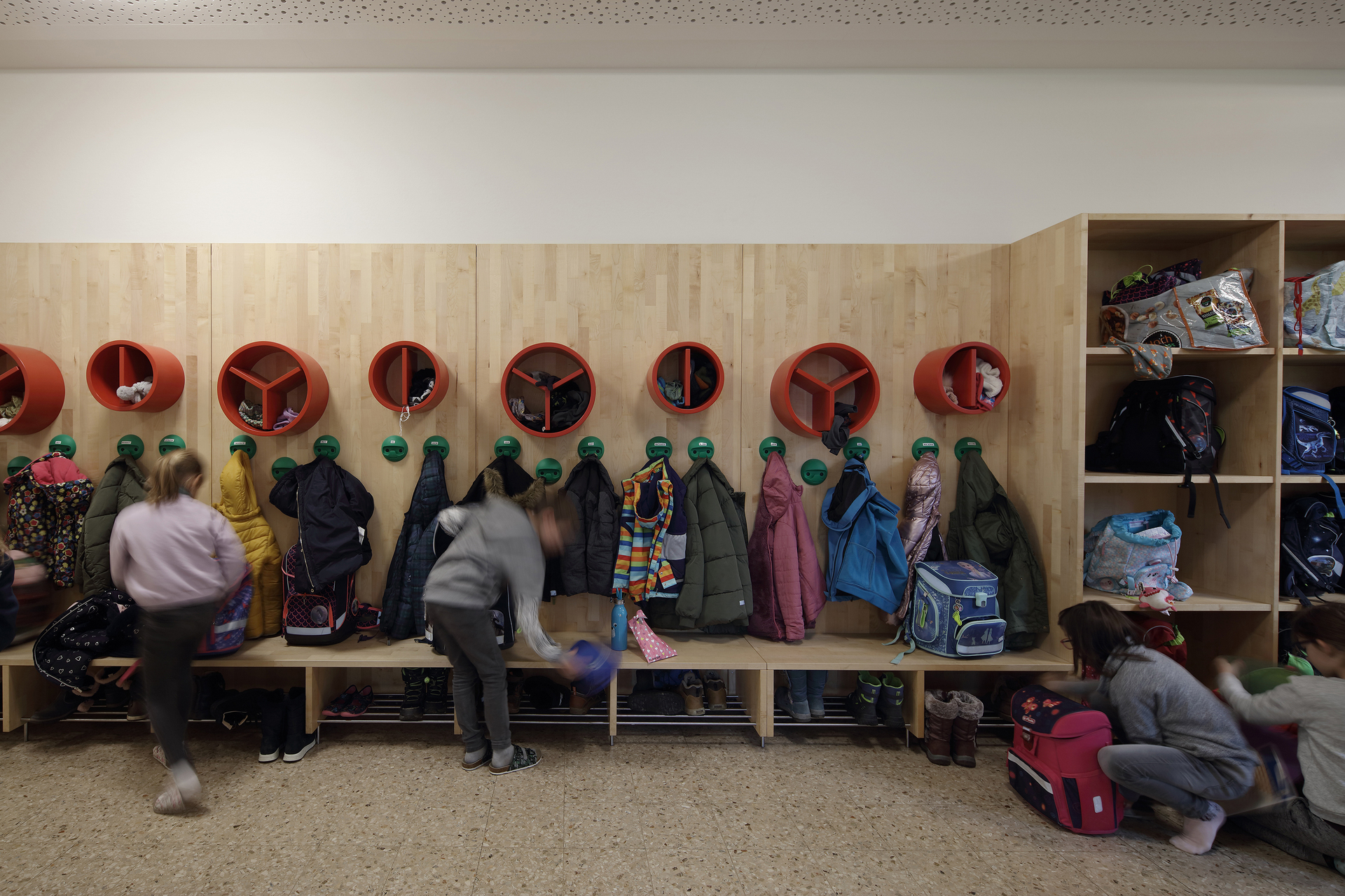 Im Zuge des Neubaus der Turnhalle wird das Gebäude der bestehenden Volksschule kernsaniert sowie durch kleinere Umbauten und einen Zubau an der Nordseite um vier Gruppenräume erweitert.