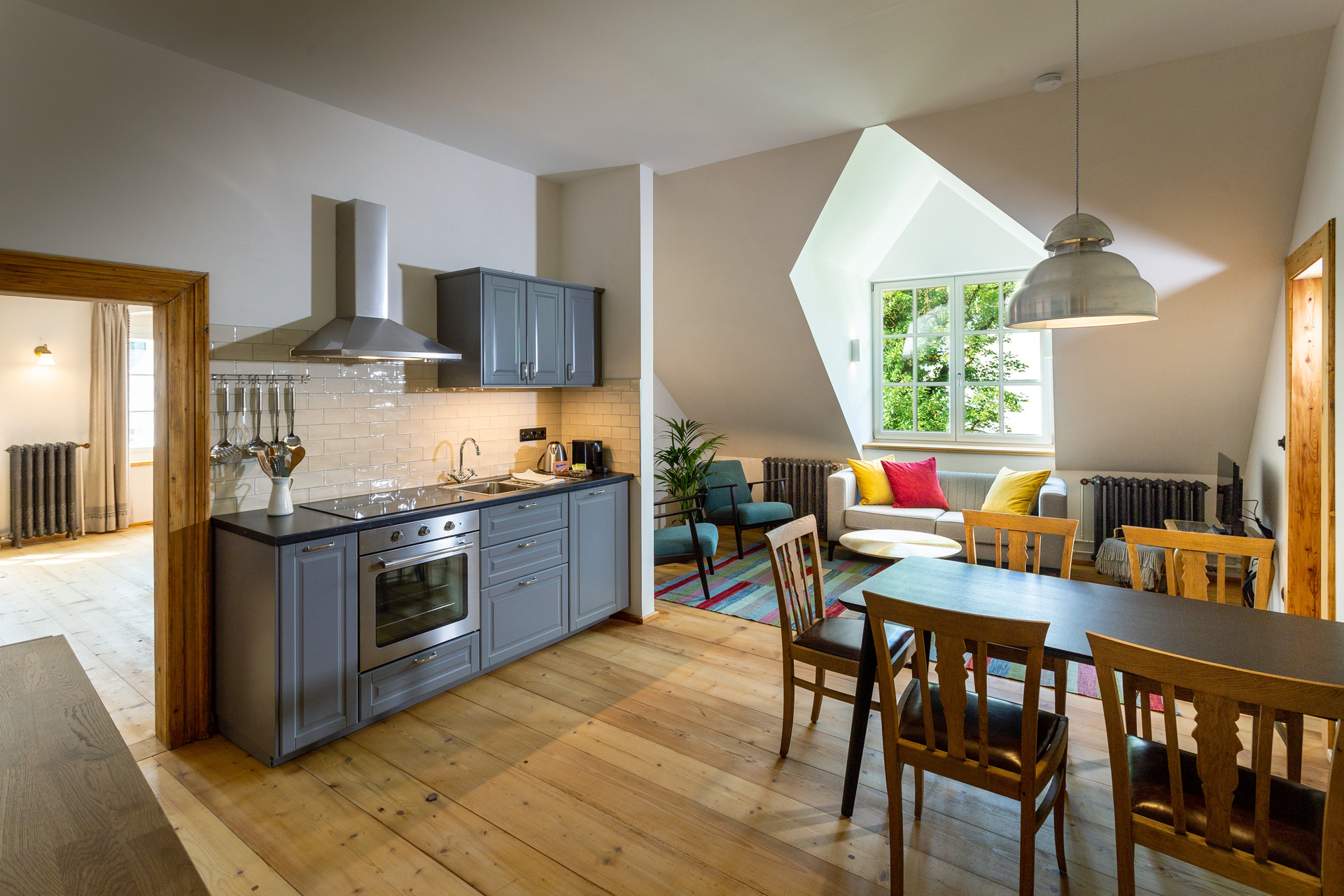 Eine Vorgabe der Planung war, historisch wertvolle Stuck - und Holzdecken sowie Holzfußböden zu erhalten und zu restaurieren. Jede der entstandenen Wohneinheiten sollte dabei ihren eigenen Charakter zeigen, was durch eine sorgfältig gewählte Ausstattung und Möblierung unterstrichen wurde.