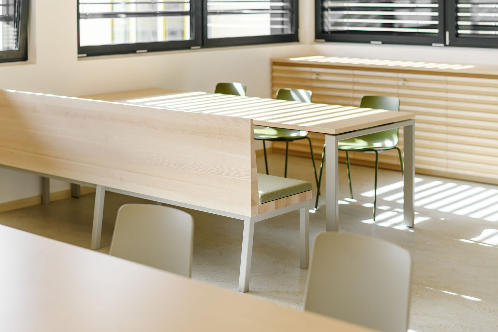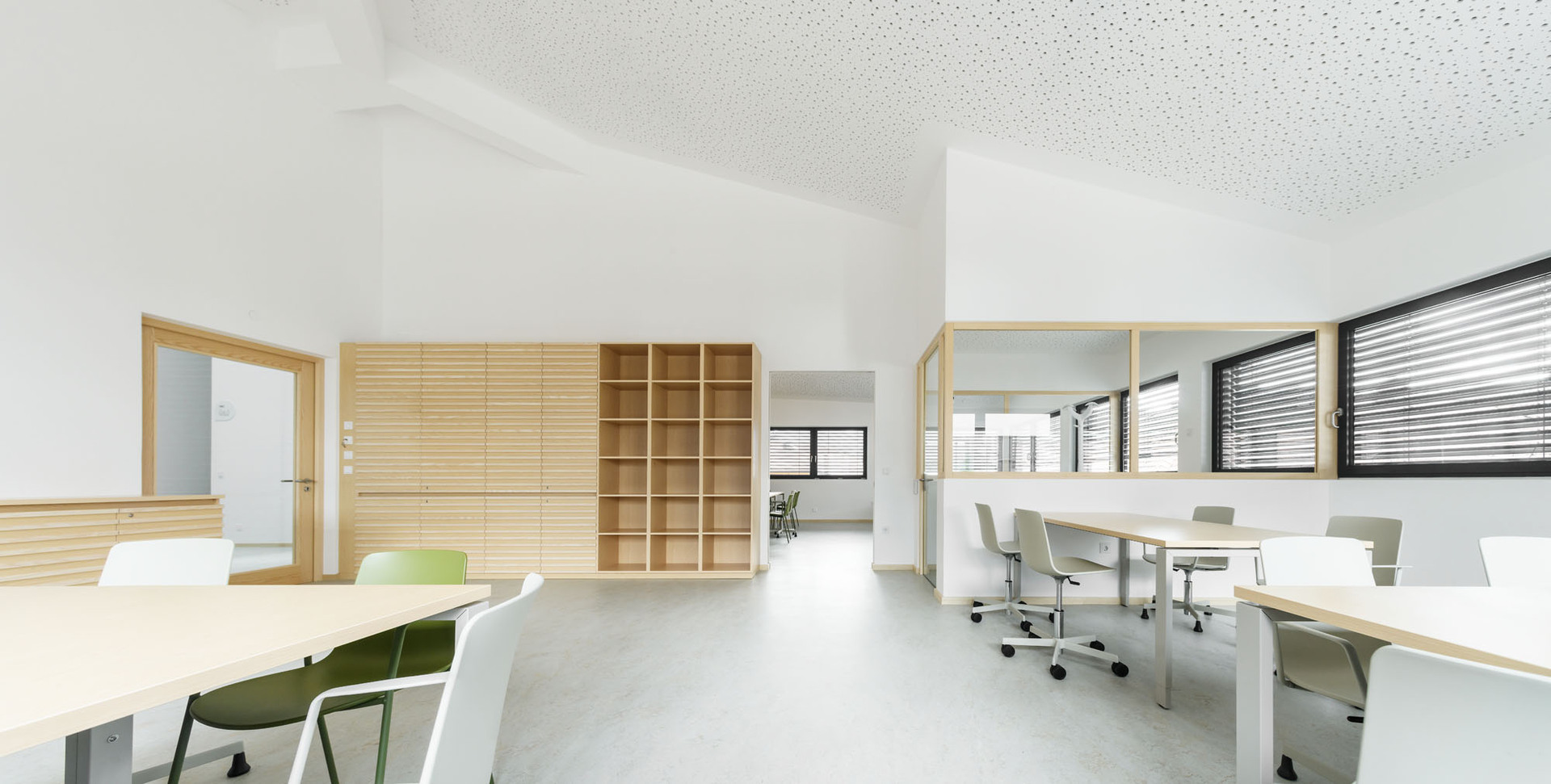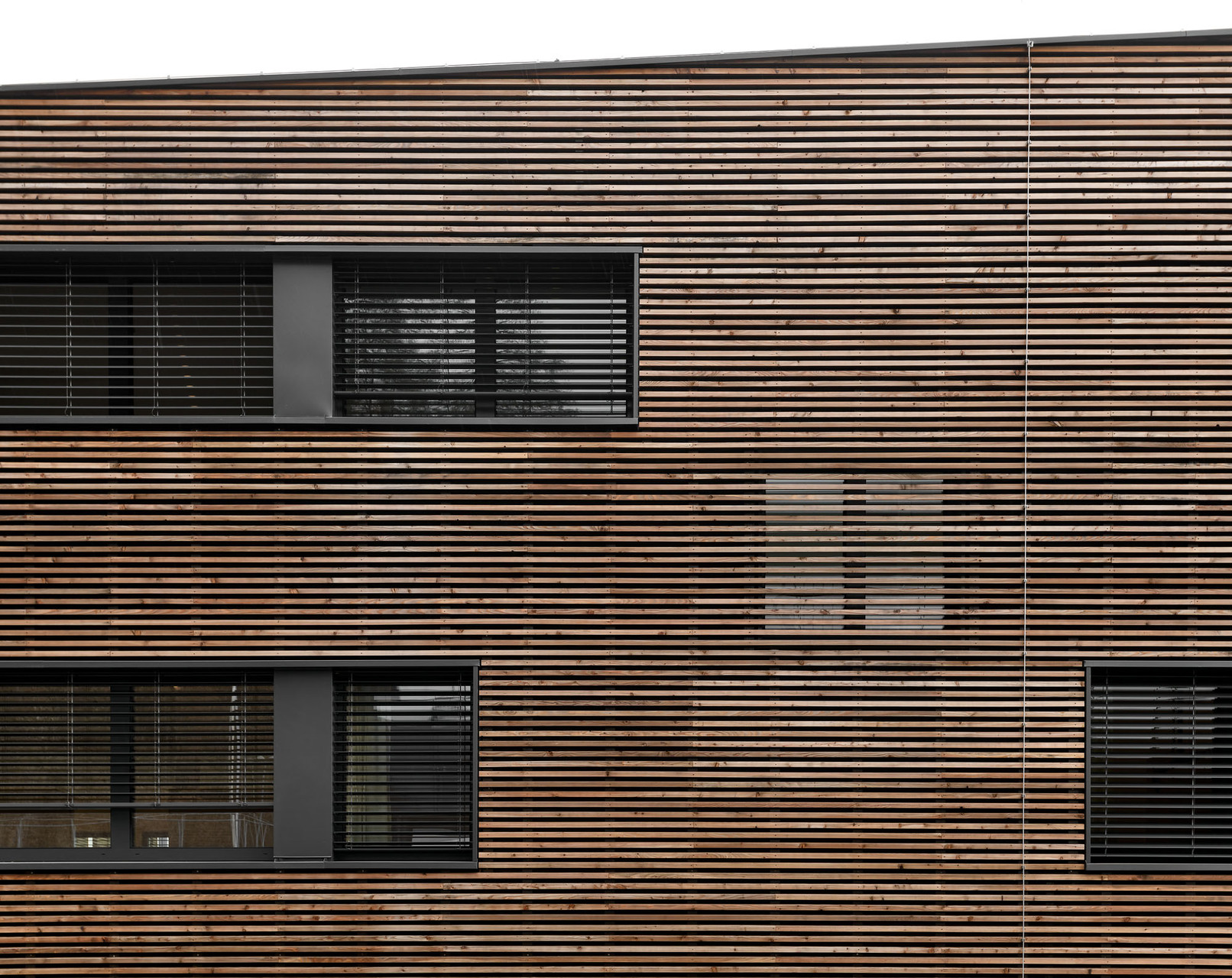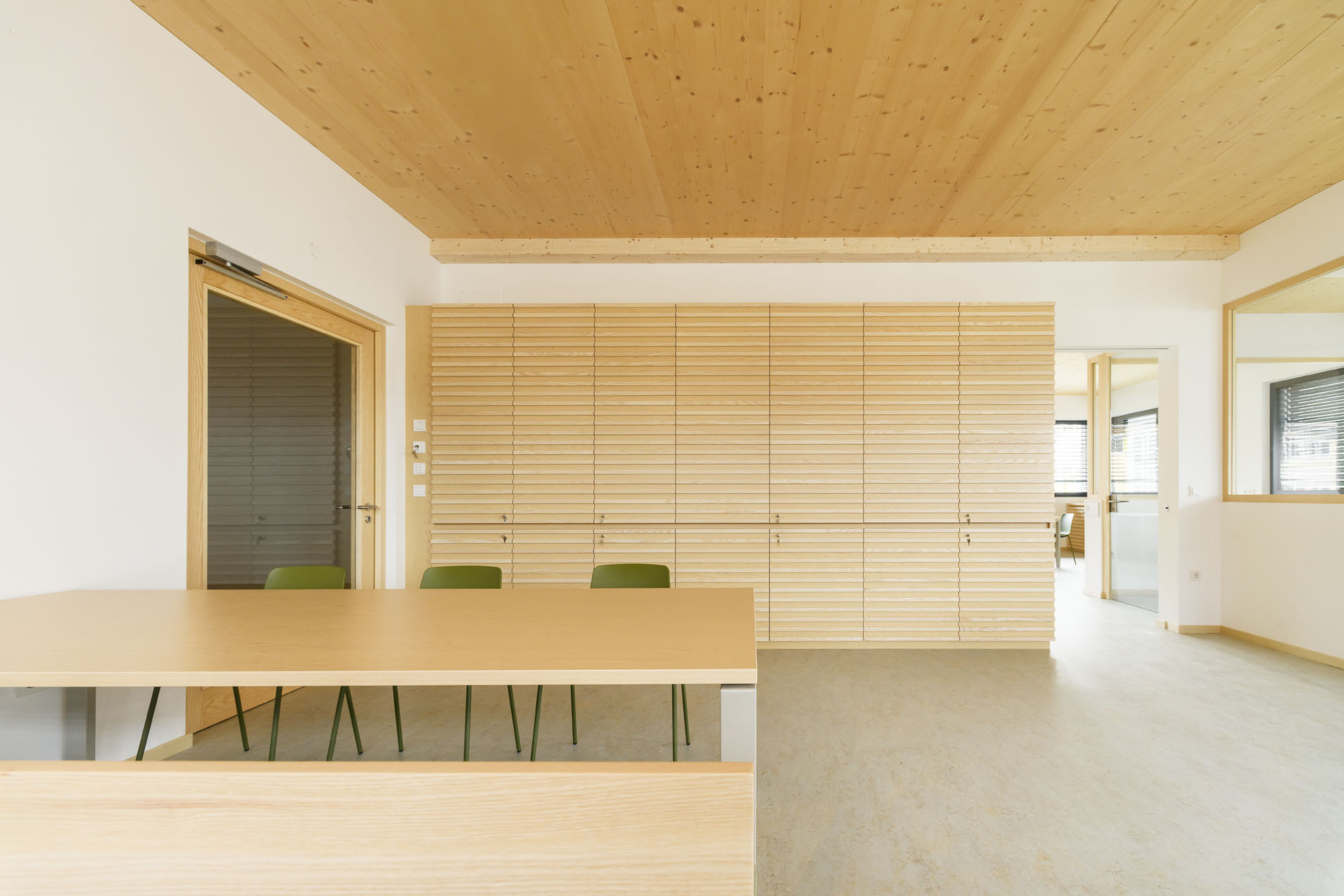 Um die statische Struktur des Bestands nicht zu überbelasten und die Bauzeit so kurz wie möglich zu halten, wurde die Aufstockung unter Übernahme des EG-Rasters in leichter Holzbauweise ausgeführt und passenderweise um eine Holzfassade ergänzt, sodass die Wahl von Konstruktion und Material vor allem für die Nutzer ersichtlich ist.