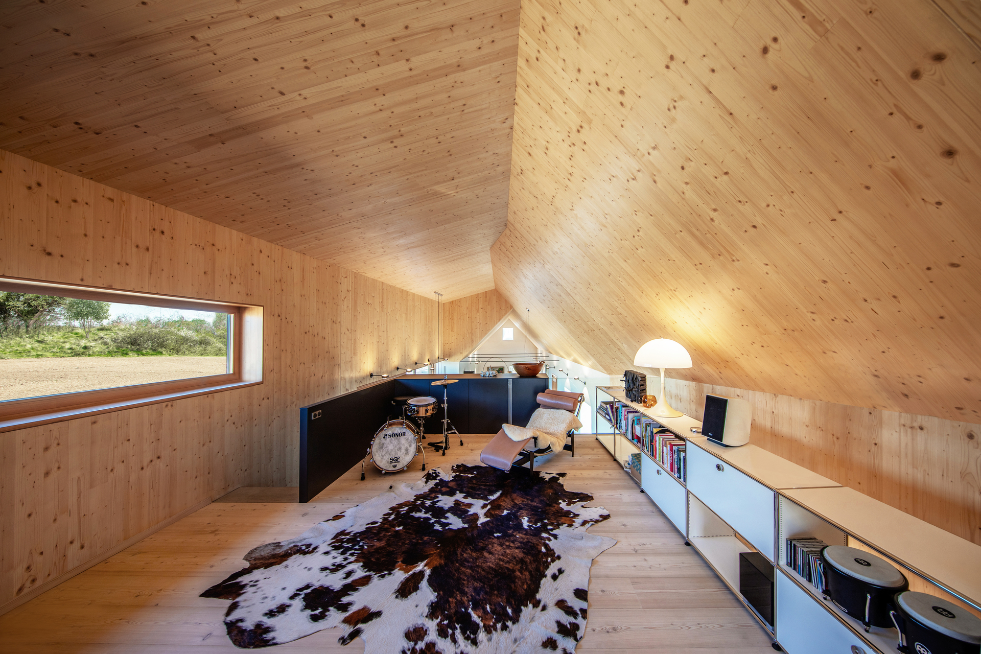 Im Zuge der Dachsanierung wurde das Dach zur thermischen Außenhülle und der darunterliegende Innenraum im Erdgeschoß „freigespielt“. Für das Bestandsgebäudes erfolgte eine Dreifachdeckung mit Lärchenholzschindeln.
