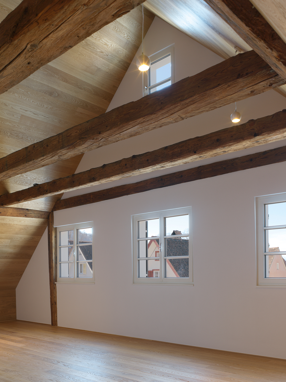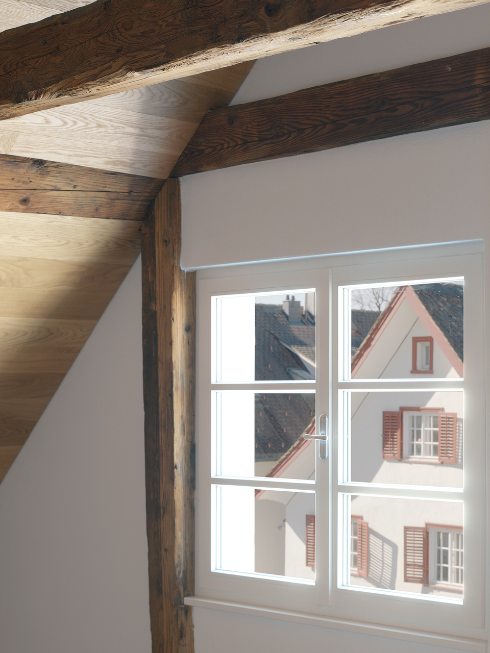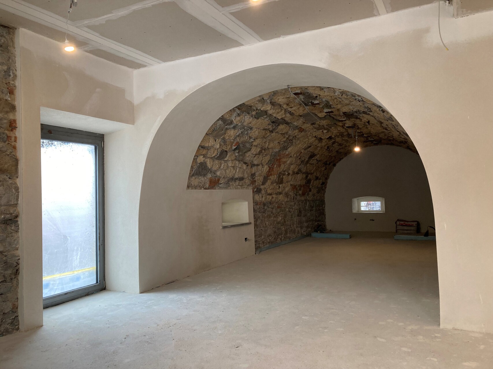 Während der Umbauarbeiten zeigte sich der konstruktive Aufbau sehr deutlich. Das Erdgeschoß ist in massivem Bruchsteinmauerwerk mit einem Meter Wandstärke ausgebildet und daher sehr stark belastbar. Im hinteren Teil sind Gewölbe aus Tuffstein, der klimatisch für die Lebensmittellagerung von Vorteil war. Die Geschosse darüber sind als Holzständerbau mit ausfachenden Bruchsteinen ausgeführt und bilden sozusagen das Bindeglied zur darüberliegenden Dachkonstruktion aus Holz. Je höher, desto leichter.