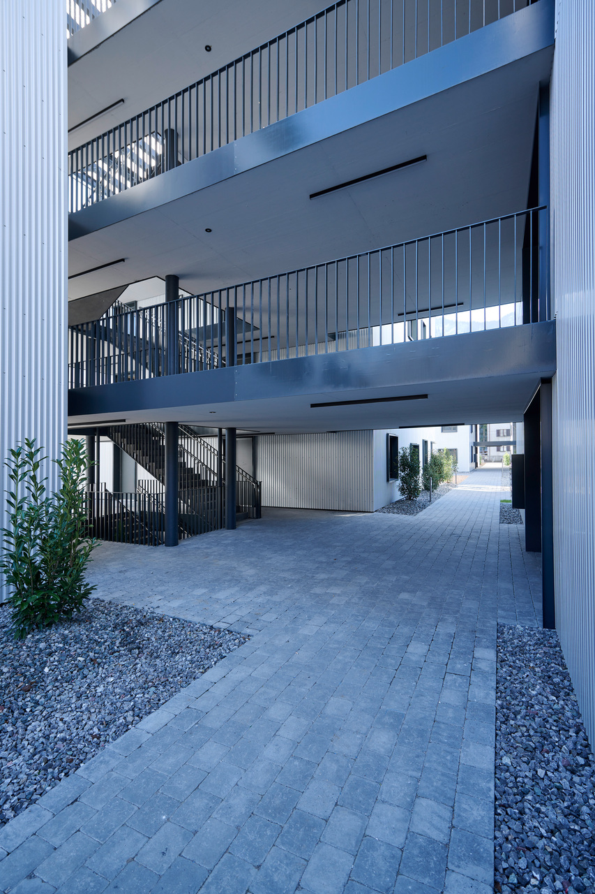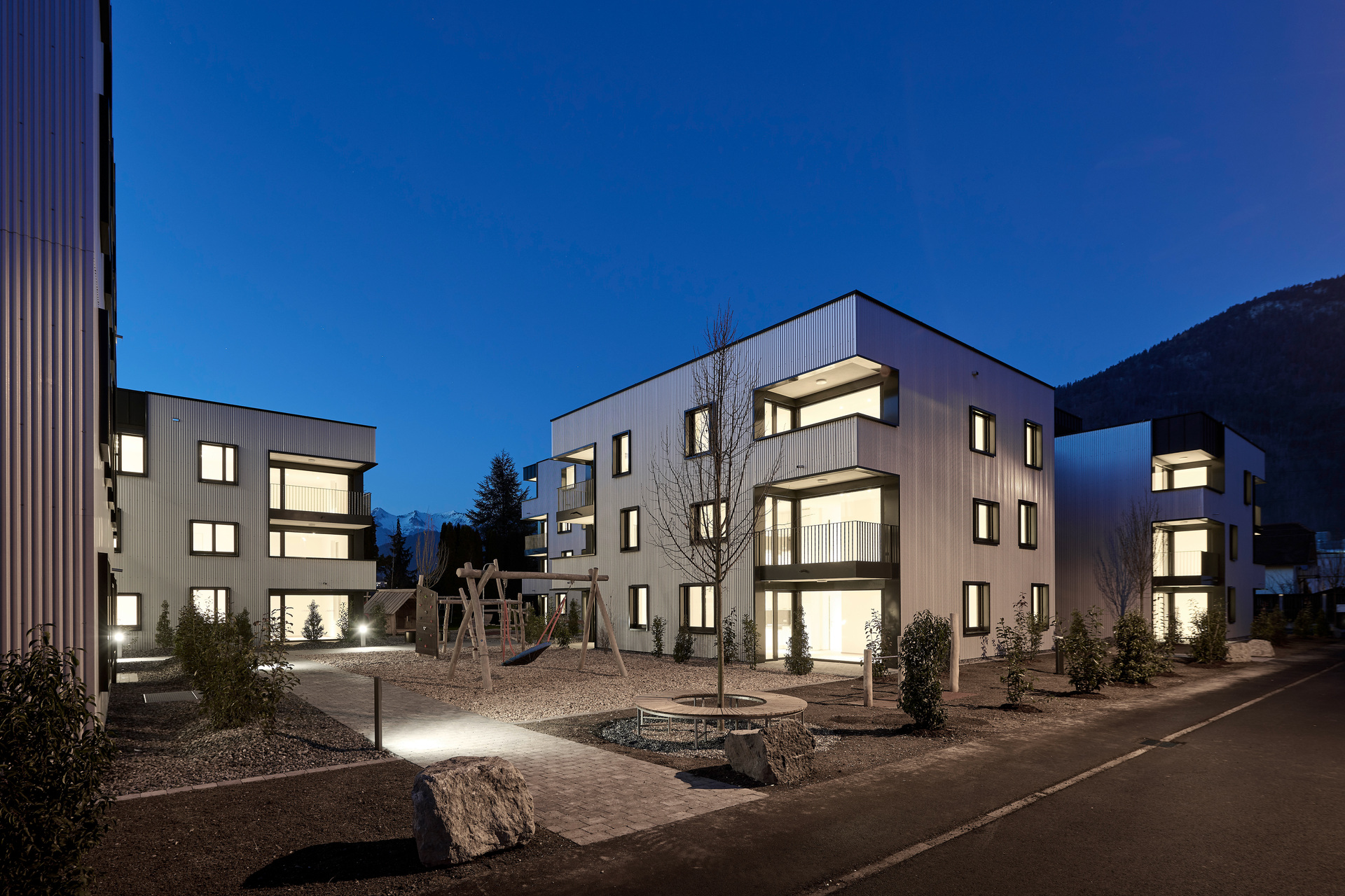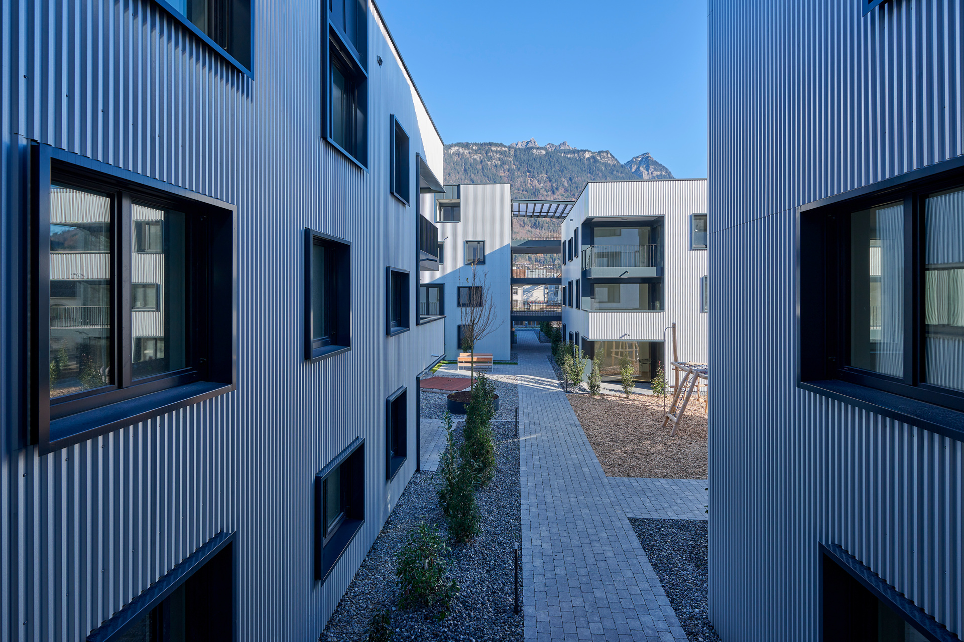 Mit dem Wohnprojekt an der Bludenzer Klarenbrunnstraße sollte eine zeitgemäße Neuinterpretation der „Werkswohnung“ umgesetzt werden. Auf Basis ökonomischer Grundrissprofile wurde eine breite Palette an Wohnungen entwickelt, in unterschiedlichen Zuschnitten je nach Bedarf. Sowohl kleine Wohneinheiten für Einzelpersonen in kurzfristigen Arbeitsverträgen als auch Mehrzimmerwohnungen für Familien wurden ins Konzept integriert. Die insgesamt 61 Wohneinheiten sind in zwei Gruppen zu je drei Einzelhäusern aufgeteilt, die durch großzügige Erschließungszonen verbunden sind. Der siedlungsartige Charakter wird durch differenzierte Freiflächen zwischen den Häusern und ergänzende Gemeinschaftseinrichtungen hervorgehoben. Der innere Bereich der Siedlung ist autofrei organisiert und wird über ein internes Wegesystem über die umgebenden Grünanlagen erschlossen. (Text: Tobias Hagleitner, nach einem Text der Architekt:innen)