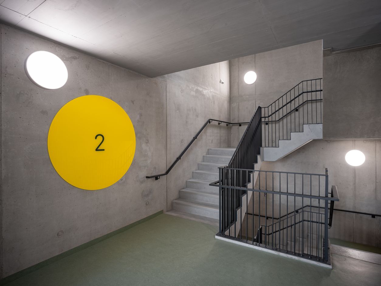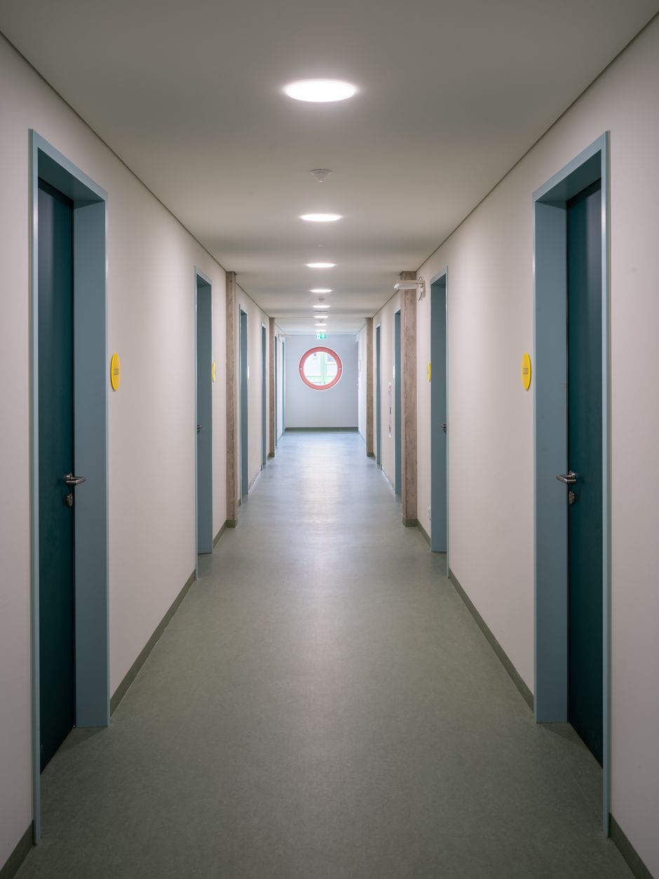 „Und das freut uns sehr“, sagt Architekt Matthias Haber, Partner im zuständigen Architekturbüro Hild und K, „denn die Unterbringung einer so großen Zahl an Menschen in einer so schwierigen Lebenssituation und noch dazu in einer so unwirtlichen Gegend wie hier, mitten im Gewerbegebiet, umgeben von Lagerhallen und Logistikern, ist keine leichte Aufgabe. Dieses Projekt ist nicht nur eine Hilfe in äußersten Notlagen, sondern auch eine Heimat auf Zeit. Und nichts würde ich lieber, als das Haus für seine Nutzerinnen und Nutzer eines Tages in Wohnungen umzubauen.“