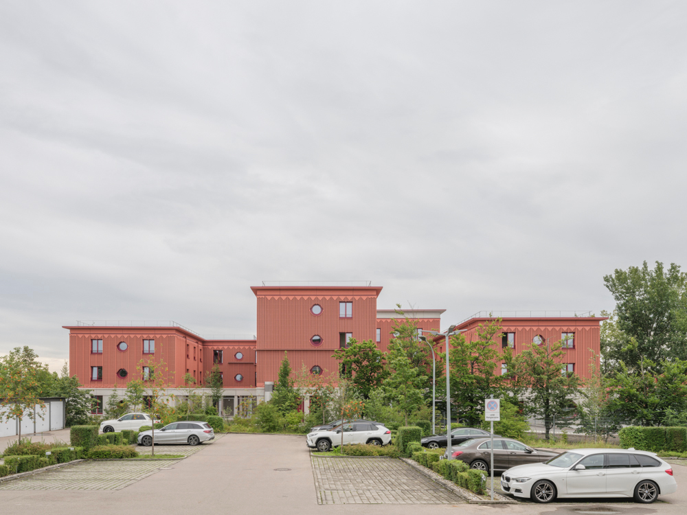 Hinter der roten Fassade im Norden Münchens verbirgt sich ein temporäres Obdach für obdachlose Menschen. Vorgestern, Donnerstag, wurde das Projekt von Hild und K beim BDA-Preis Bayern gewürdigt.
