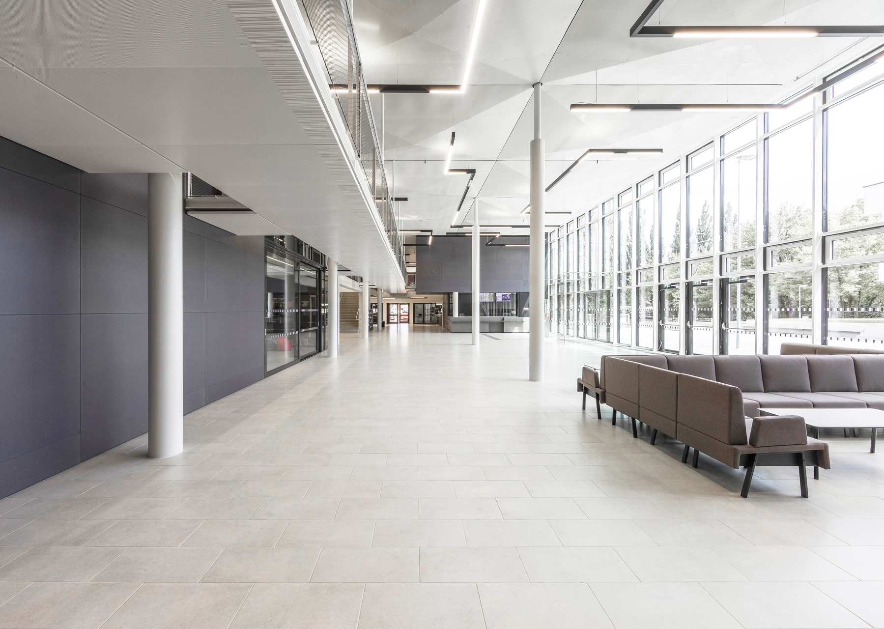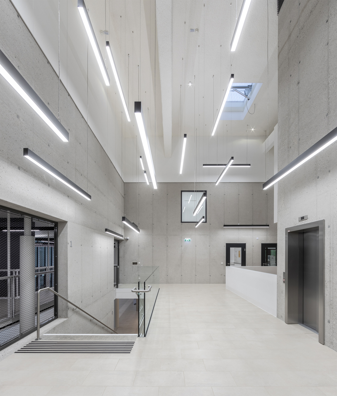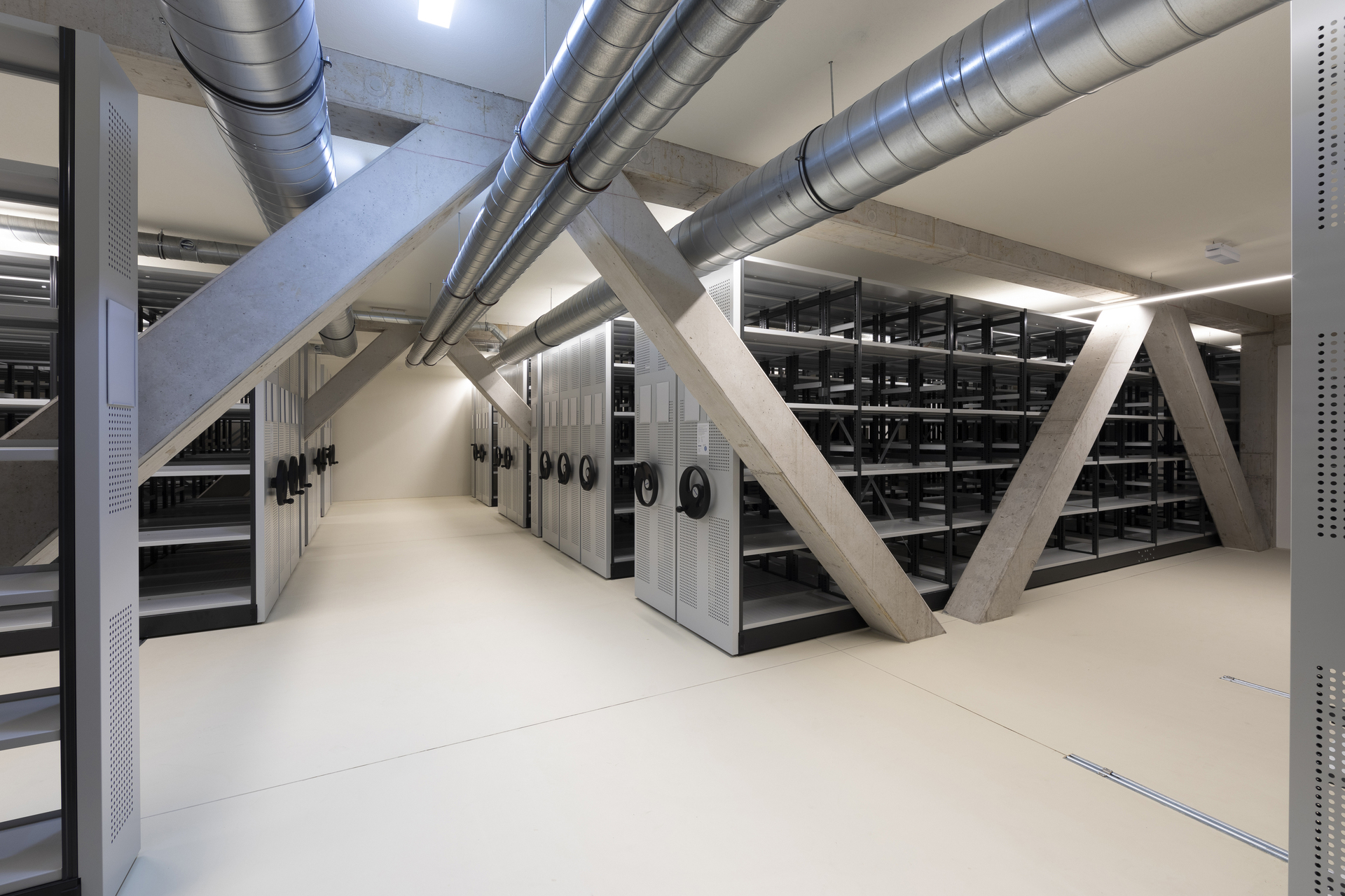 Die drei Volumina sind in maximal fünf Ebenen organisiert, die teilweise ins Gelände eingegraben sind und deshalb im Außenraum nicht wahrnehmbar. Somit wird, trotz umfangreichen Flächenzuwachses, ein ausgewogenes Erscheinungsbild innerhalb des Gebäudeensembles erreicht und die gewachsene Struktur erhalten.