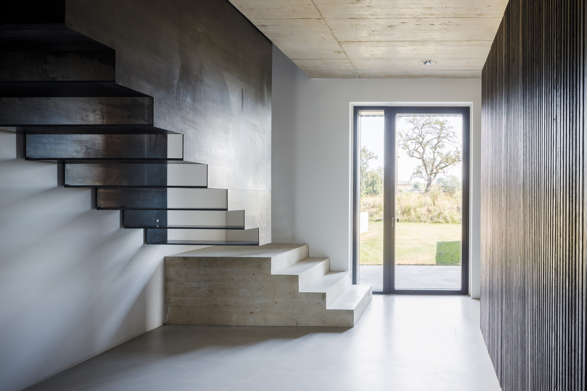 Die offene Integration des Neubaus in den Bestand spiegelt sich im Grundriss wider, der in ähnlich offener Geste um einen zentralen Infrastrukturblock mit allen notwendigen Installationen organisiert ist. Die Fassade wurde bewusst schlicht gehalten, um den neuen Baukörper in harmonischen Kontrast zu den massiven Ziegelpfeilern zu setzen. Überdachte Außenbereiche erweitern den Wohnraum und fördern die Verbindung von Innen- und Außenraum. (Text: Tobias Hagleitner, nach einem Text der Architekt:innen)