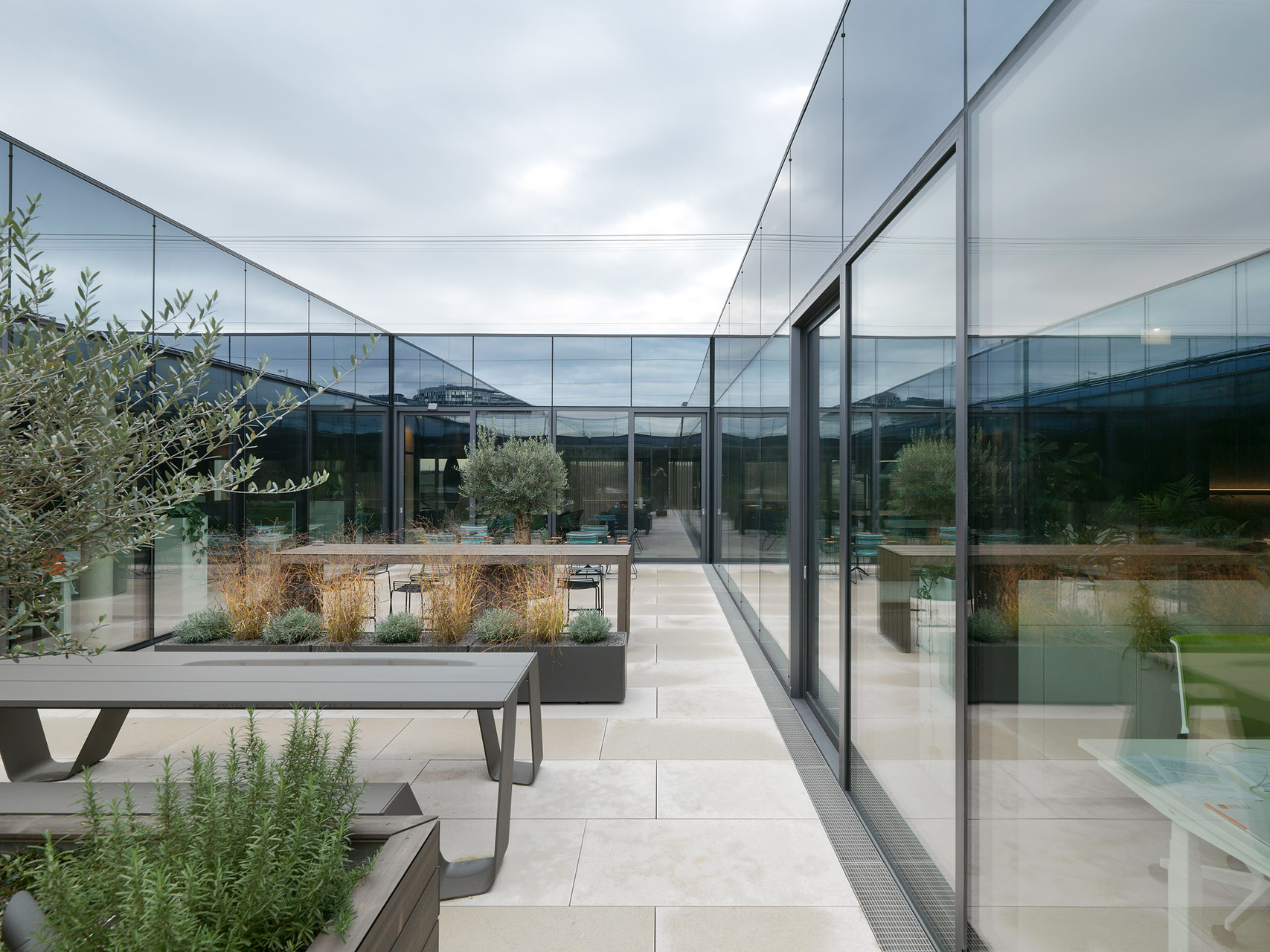 Die Supernova-Mitarbeitenden im obersten Stockwerk profitieren von einem Lichthof in der Mitte der Büroetage, der auch die in der Tiefe des Gebäudes liegenden Arbeitsplätze mit natürlichem Licht versorgt. Er dient als biophiles Element und bietet auch einen Arbeitsbereich im Freien, der sich mit einem mobilen Vordach schützen lässt.