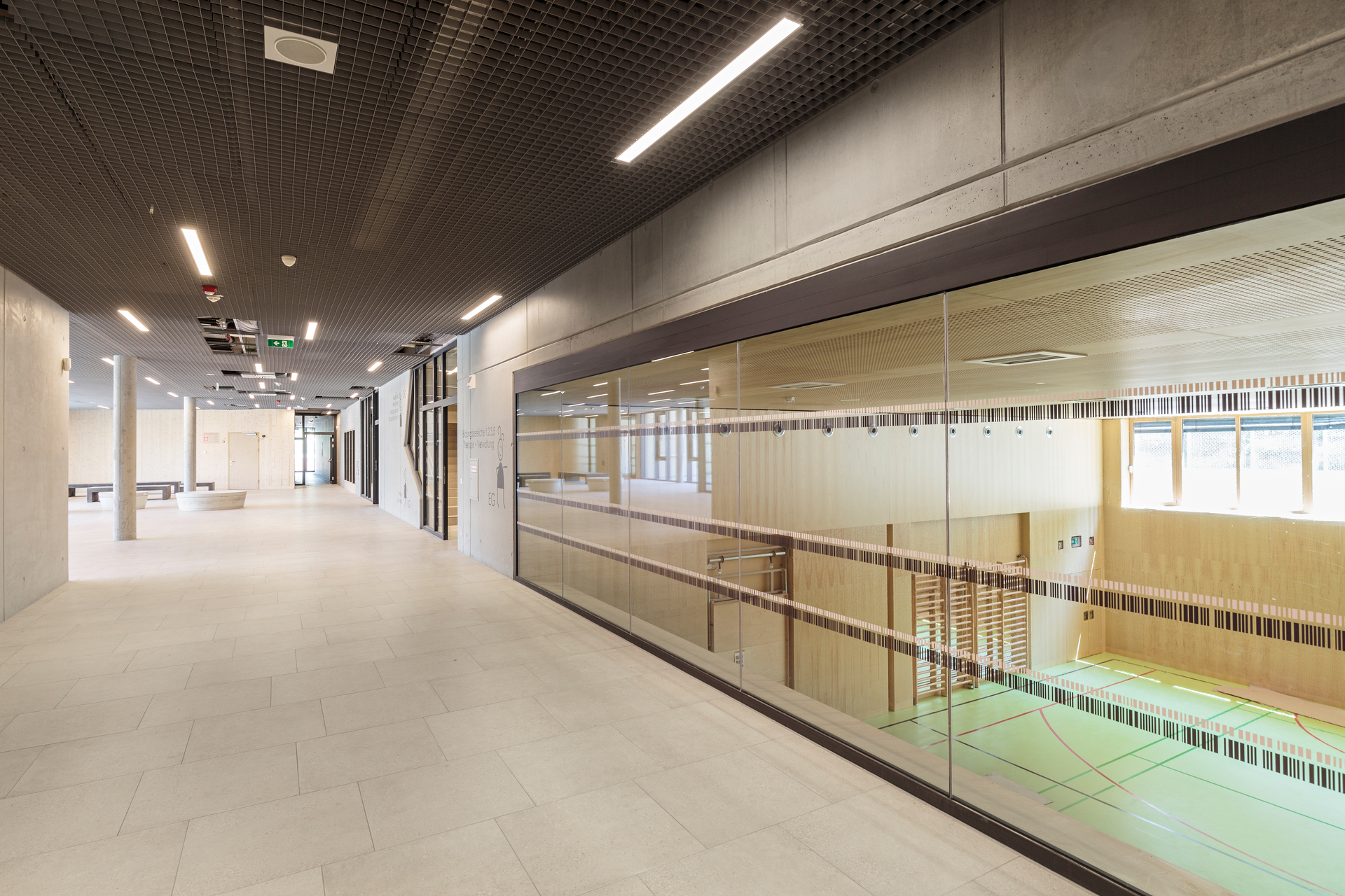 Die hellen auch nach innen verglasten Bildungsräume an der Fassade kontrastieren mit einer eher geschlossenen dunkleren Kernzone.