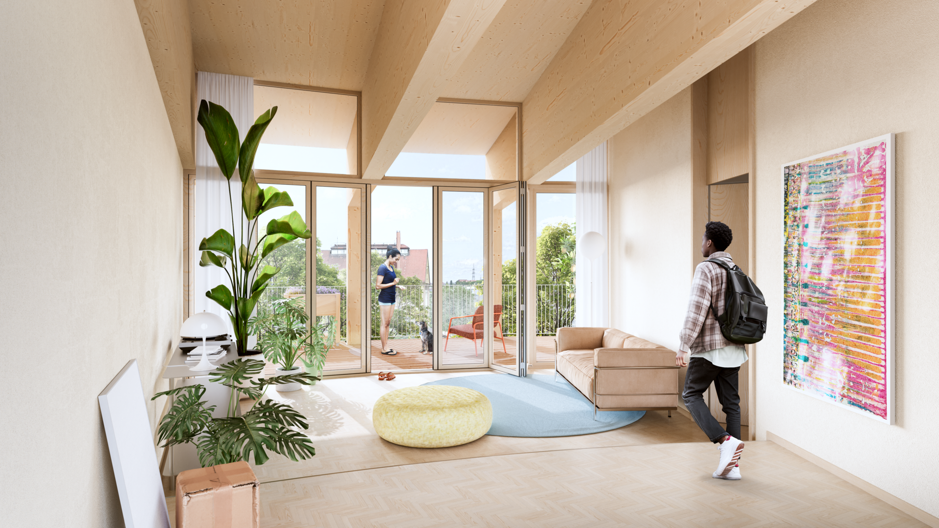 Die im Vergleich zu konventionellen Parkhäusern sehr große Geschosshöhe ermöglicht einen zukünftigen (stufenweisen) Umbau des Parkhauses in eine Wohn- oder Arbeitswelt mit natürlich belichtetem Innenhof anstelle der Fahrrampe.