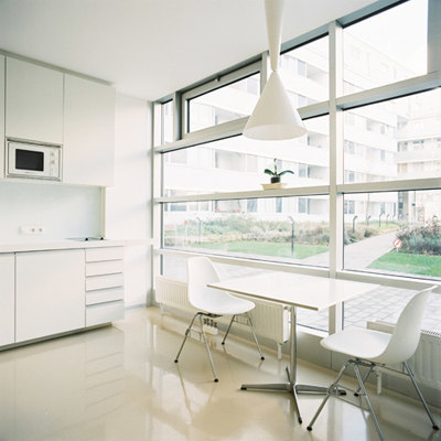 Das Berufsbild von Ärzten wandelt sich wie alle Berufsbilder mehr oder weniger rasch im Sog von technischer Innovation und sozio-kulturellen Veränderungen, neue Standards im Gesundheitswesen führen zu dienstleistungsorientierten Konzepten, die sich auch räumlich formulieren lassen. Es ist nicht mehr befremdlich, wenn sich ein Arzt mit seiner Praxis in einem Gassenlokal niederlässt, das im Sinne einer „offenen Anlaufstelle“ visuellen Bezug zum Aussenraum sucht. Zum Beispiel in der Wiesenstadt, einer neuen Wohnbebauung im Stadtentwicklungsgebiet von Alterlaa, wo ein neues transparentes Gesundheitszentrum zu ebener Erde Präsenz zeigt, zugleich aber auch - etwa in einer besonnenen Funktionsverteilung - die Intimitätsbedürfnisse und Befindlichkeiten seiner Kunden respektiert.Denn bei allen Veränderungen, die sich auch im „Berufsbild“ der Patienten niederschlagen, bleibt der Gang zum Arzt eine persönliche, vielleicht auch belastende Angelegenheit. Man kann davon ausgehen: Die Unruhe trägt jeder ohnehin mit sich, Beruhigung in der Dingwelt kann dann nur förderlich sein. Die Balance, die diese Ordination ausstrahlt, legt zumindest die Vermutung nahe, dass solche Erwägungen die strukturellen und formalen Entscheidungen begleitet haben.
