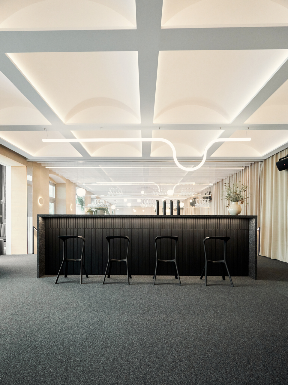 Die zeitgemäße Interpretation der Bauernstube bietet eine informelle Sitzlandschaft, die aus mehreren Sitzgelegenheiten und Holzpodesten besteht. Jeder kann sich in dem frei zugänglichen Innenraum seinen individuellen Platz zum Ausruhen wählen. Der Raum ist windgeschützt, aber nicht beheizt. Dort können alle eine Pause einlegen, ohne etwas konsumieren zu müssen. Und alle können die atemberaubende Berglandschaft der Umgebung genießen, denn das große Panoramafenster sorgt für Licht und Weitblick auf die umliegenden Berge. Der Aufenthaltsraum ist unversperrt und knüpft so auch an die Tradition von alpinen Schutzräumen an, die im Sommer und Winter genutzt werden können. Zudem gibt es ganz oben auf der Aussichtsplattform eine Panoramaterrasse mit 360 Grad. (Text: Architekt:innen)