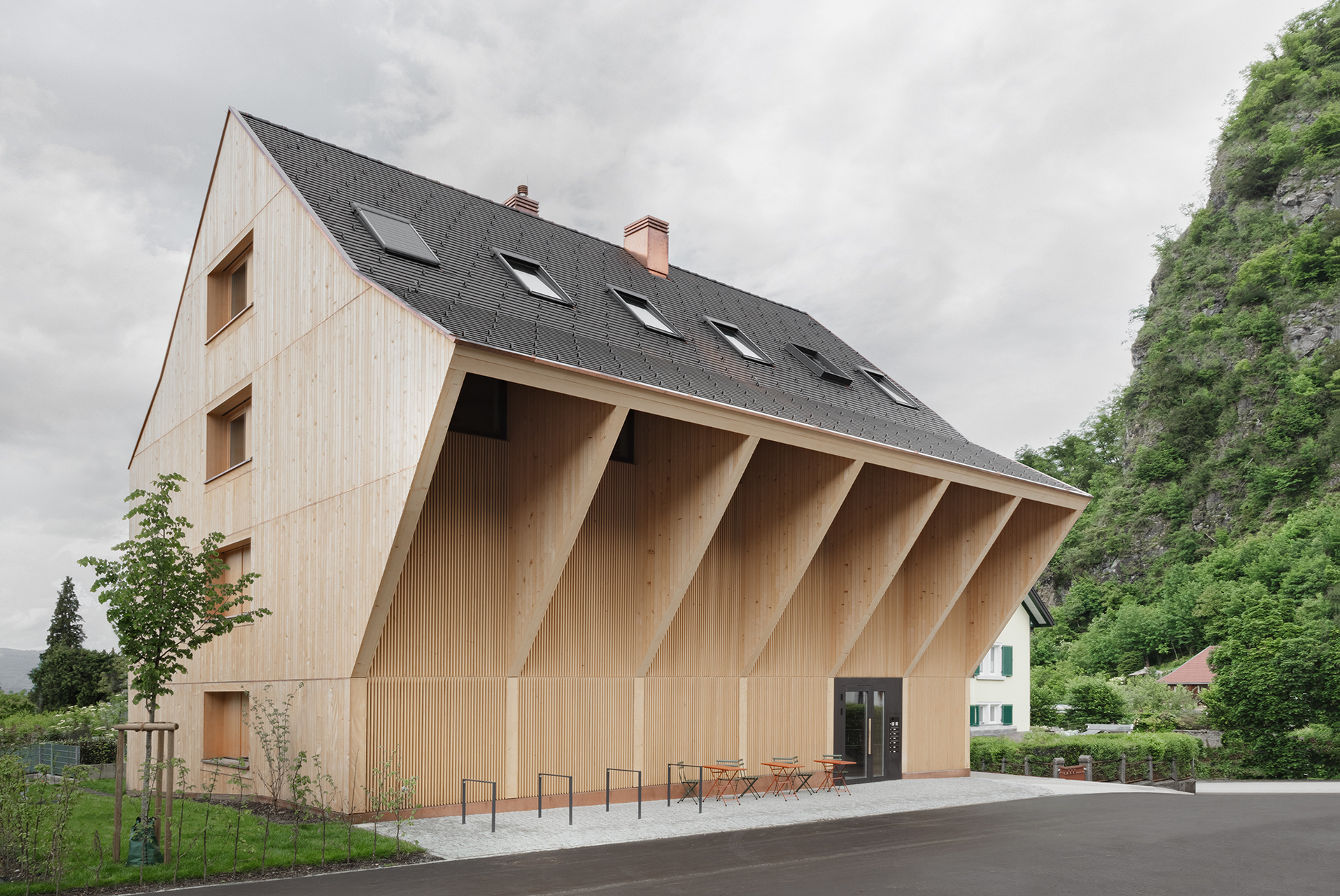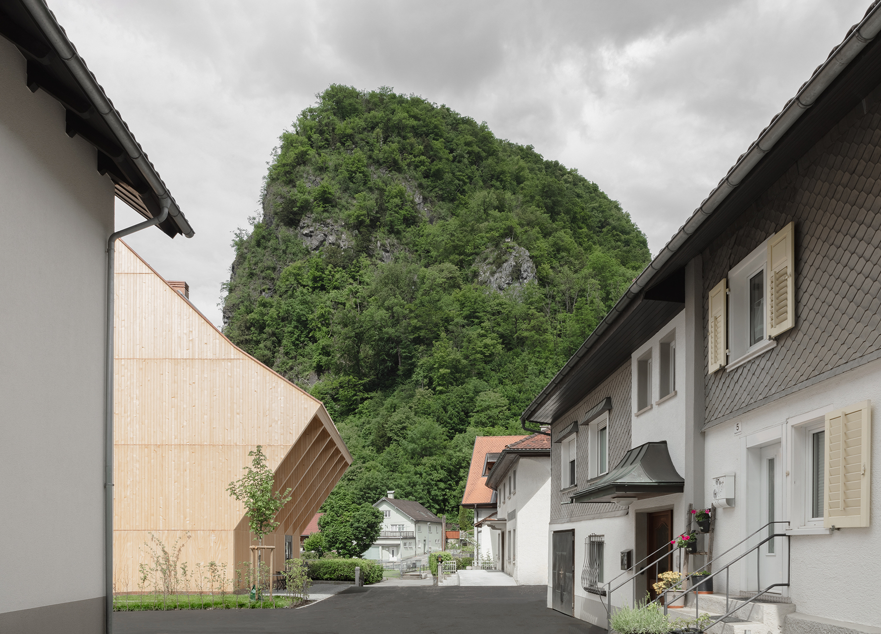 An der Stelle der alten Wagnerei nimmt der Neubau in Maßstab, Materialität und Form lokale Bautraditionen auf. Unter dem geknickten Steildach wurden auf drei Geschossen mehrere Wohneinheiten realisiert. Die 2-, 3- und 4-Zimmer-Wohnungen sind über einen kompakten, innenliegenden Stiegenkern sowie einen Personenaufzug barrierefrei erschlossen. Die Einheiten öffnen sich ebenerdig bzw. mit tiefen Loggien nach Nordwesten zum Garten. (Text: Tobias Hagleitner, nach einem Text der Architekten/Bauherrschaft)