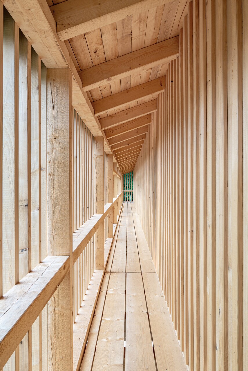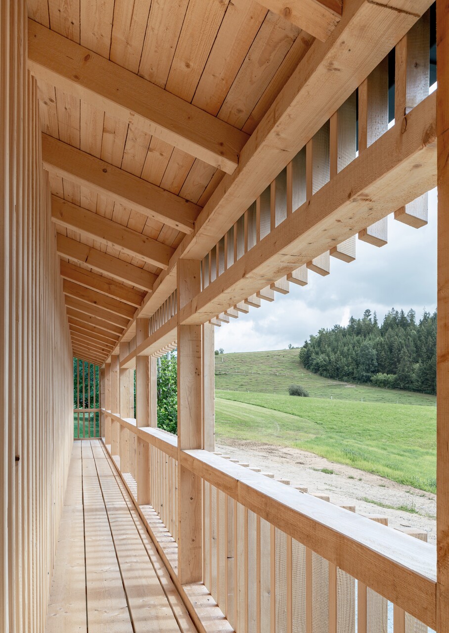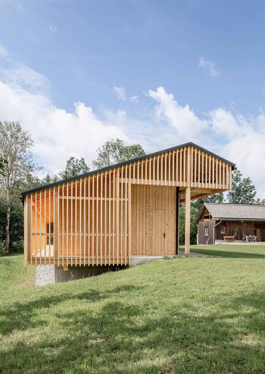 Regionale Wertschöpfung, naturräumliche Einfügung und Identifikation der Nutzer:innen mit dem Objekt standen bei der Entwicklung des Bauwerks im Vordergrund. Hervorzuheben ist das Engagement der Freiwilligen Feuerwehr Auberg, die das Gebäude mit 1.700 freiwilligen Arbeitsstunden innerhalb von weniger als zwei Monaten – von den Erdarbeiten bis zur Fertigstellung, in abgestimmter Zusammenarbeit mit allen Beteiligten – errichtet hat. (Text: Architekt:innen, bearbeitet)