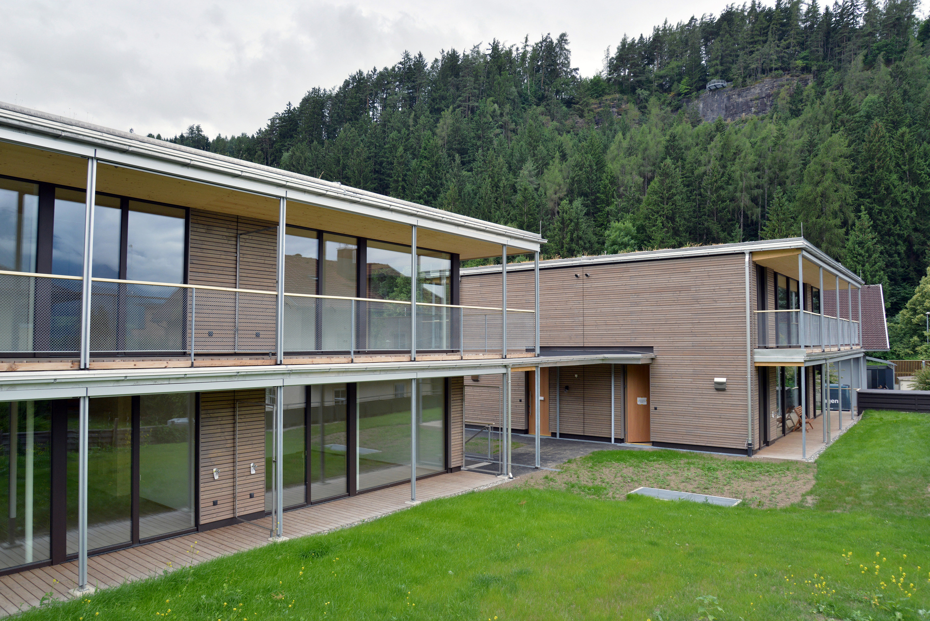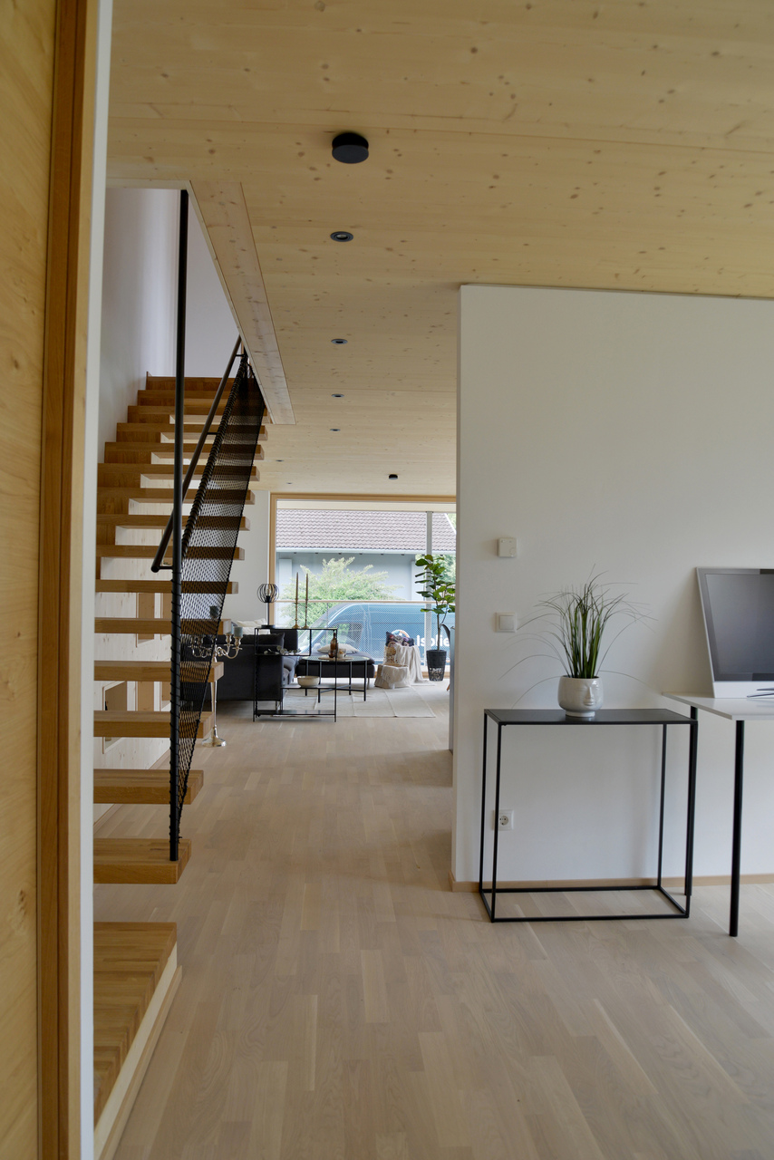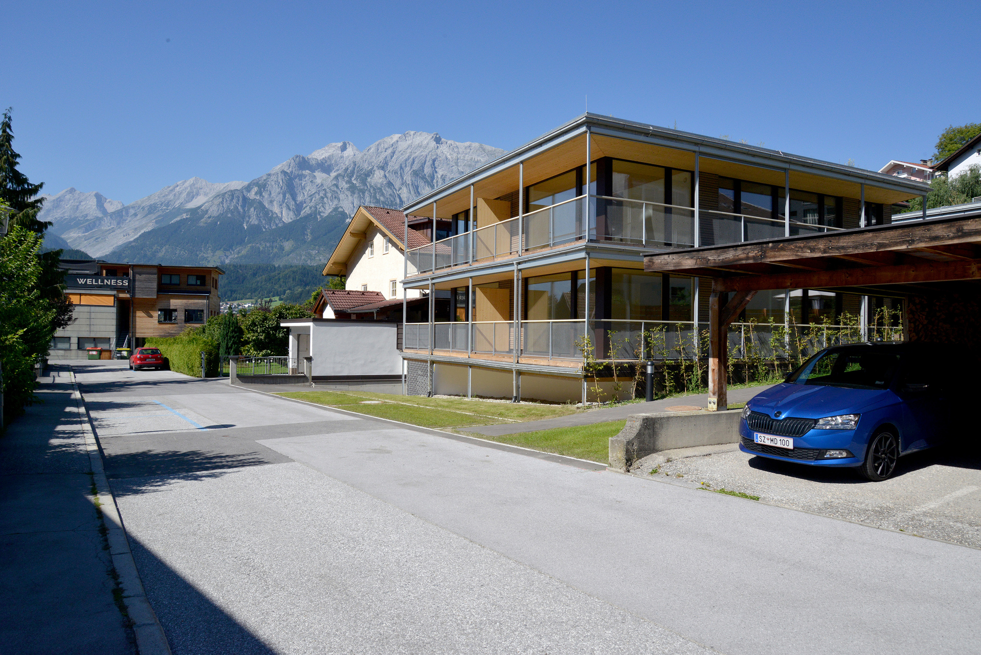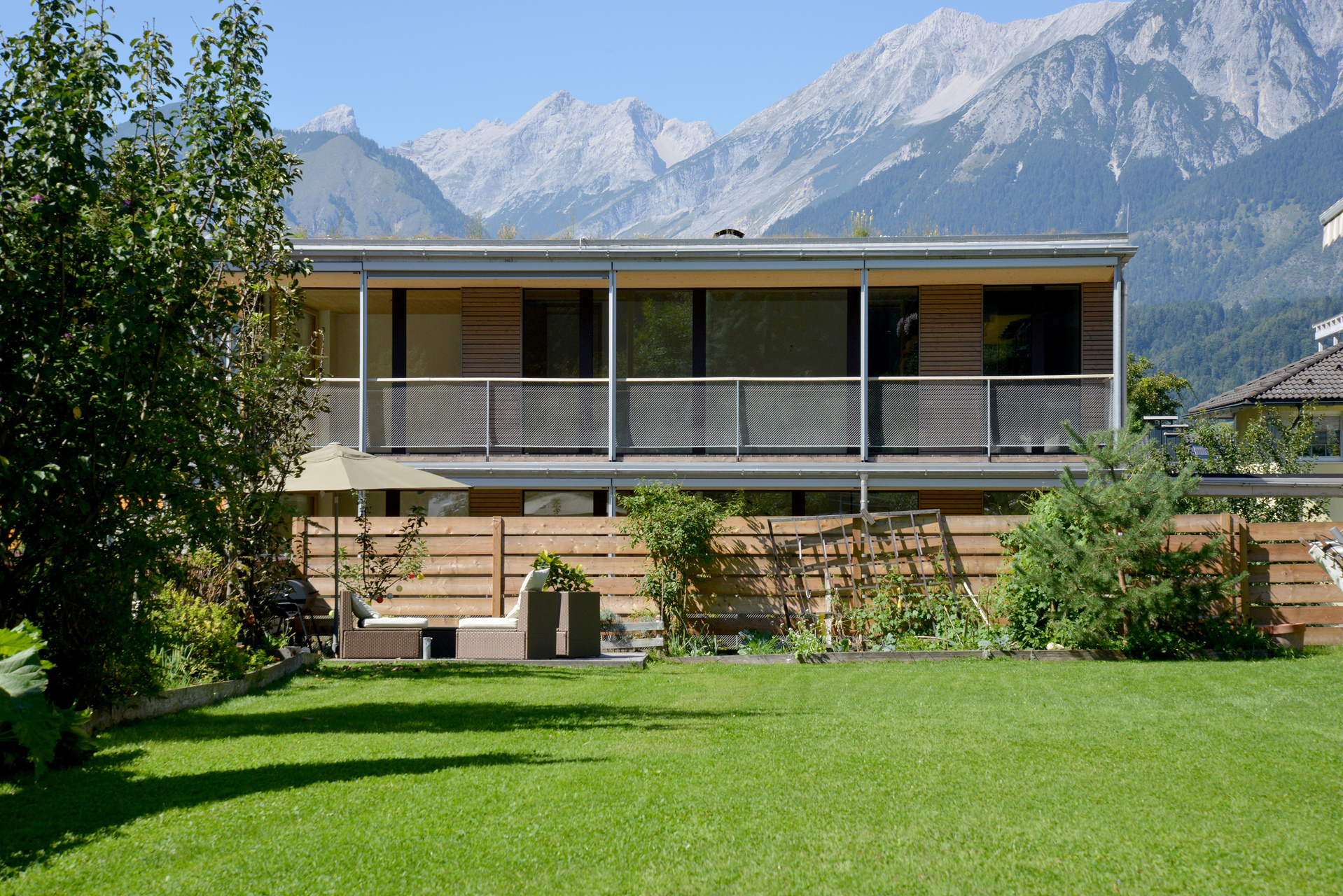 Die in Holzmassivbauweise errichteten Baukörper kommen dank sorgfältiger Detaillierung nahezu ohne Stahlverstärkungen aus – nur an der Fassade sind leichte Stahlstützen vorhanden. Umlaufende, vorgefertigte Holzbalkone, die thermisch getrennt mit einer speziellen Holzknaggenkonstruktion ausgeführt sind, erweitern die Wohnräume ins Freie. Raumhohe Verglasungen und außerhalb der Brüstung angeordnete Sonnenschutzrollos lassen die Räume optisch über die thermisch konditionierten Bereiche hinaus wirken – bei gleichzeitiger Einhaltung der Passivhaus-Grenzwerte gemäß PHPP. (Text: Architekt, bearbeitet)