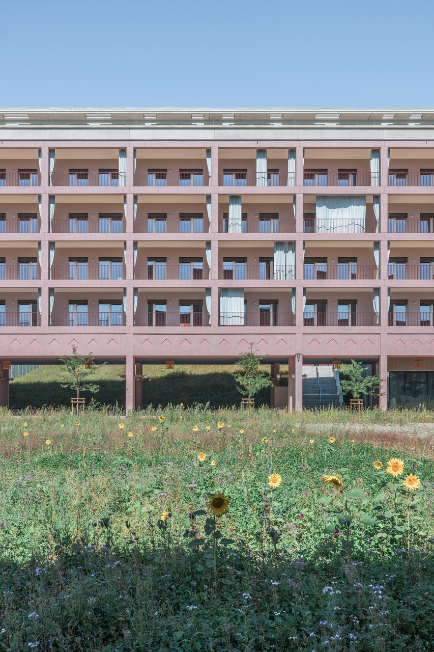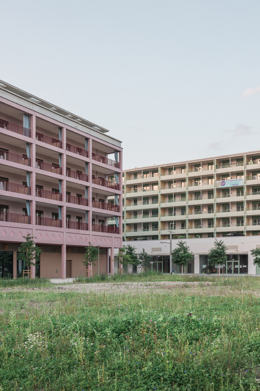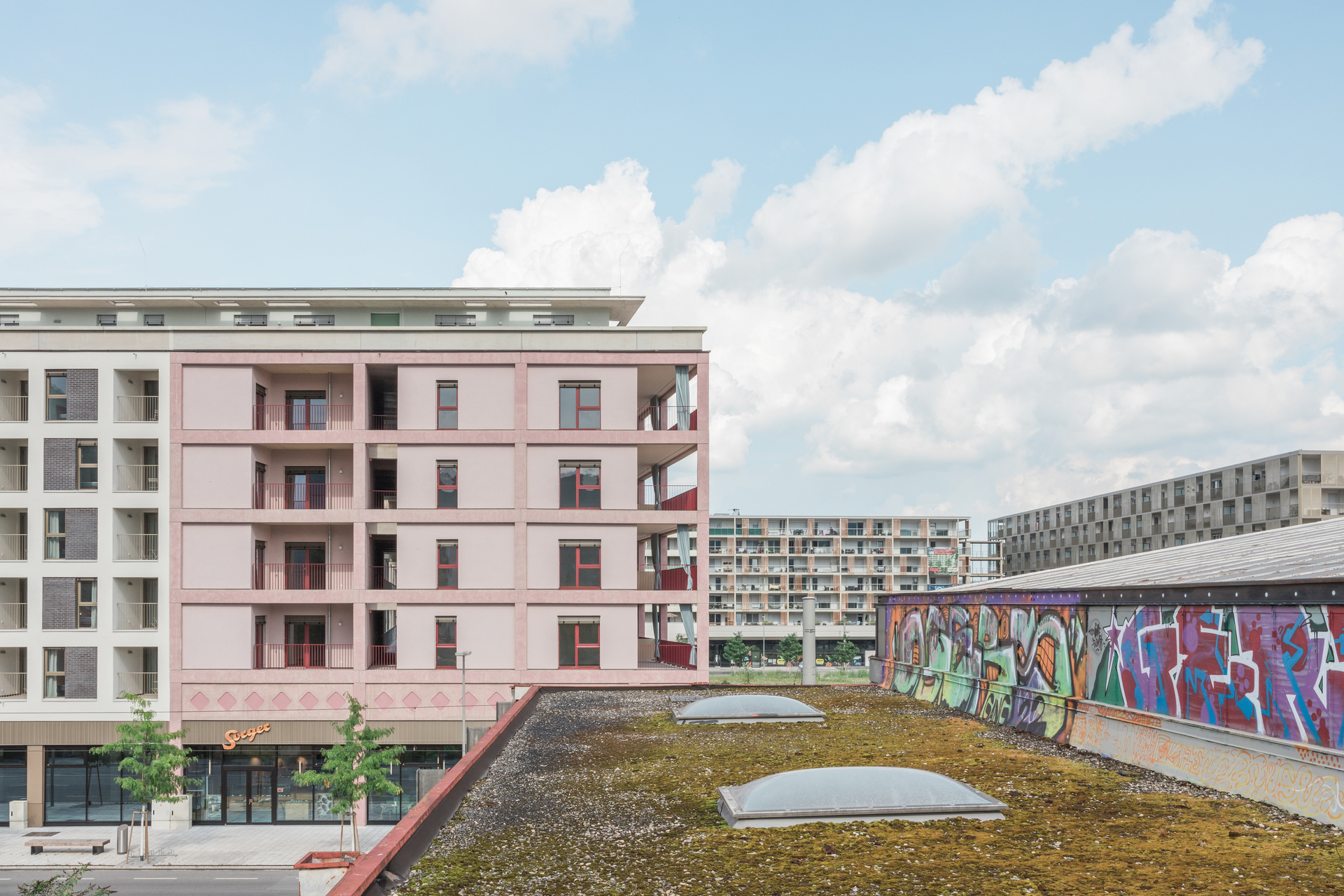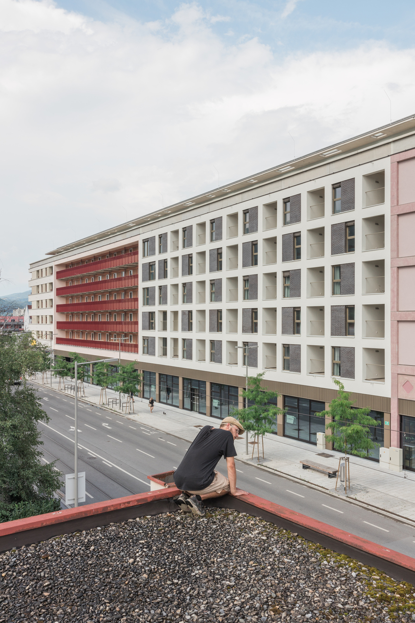 Das Gestaltungskonzept der Fassaden beinhaltet absichtlich keine durchgängige stringente Sprache, sondern ein Tableau unterschiedlicher Ausformungen, das, ähnlich dem Gründerzeitblock, wenige Themen vielfältig variiert, ohne dabei den Zusammenhalt in Frage zu stellen. (Autor: Achim Geissinger, nach einem Text der Architekten)
