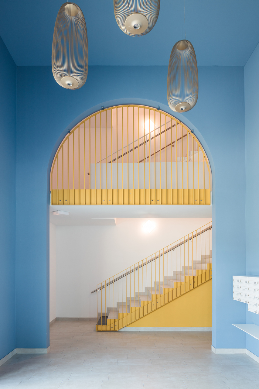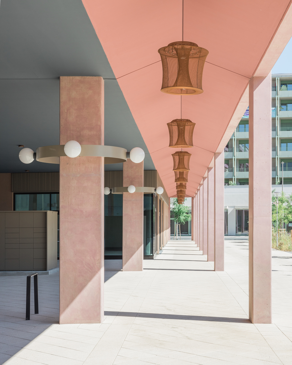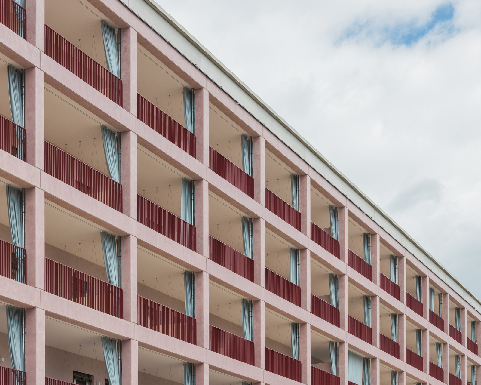 Das Gestaltungskonzept der Fassaden beinhaltet absichtlich keine durchgängige stringente Sprache, sondern ein Tableau unterschiedlicher Ausformungen, das, ähnlich dem Gründerzeitblock, wenige Themen vielfältig variiert, ohne dabei den Zusammenhalt in Frage zu stellen. (Autor: Achim Geissinger, nach einem Text der Architekten)