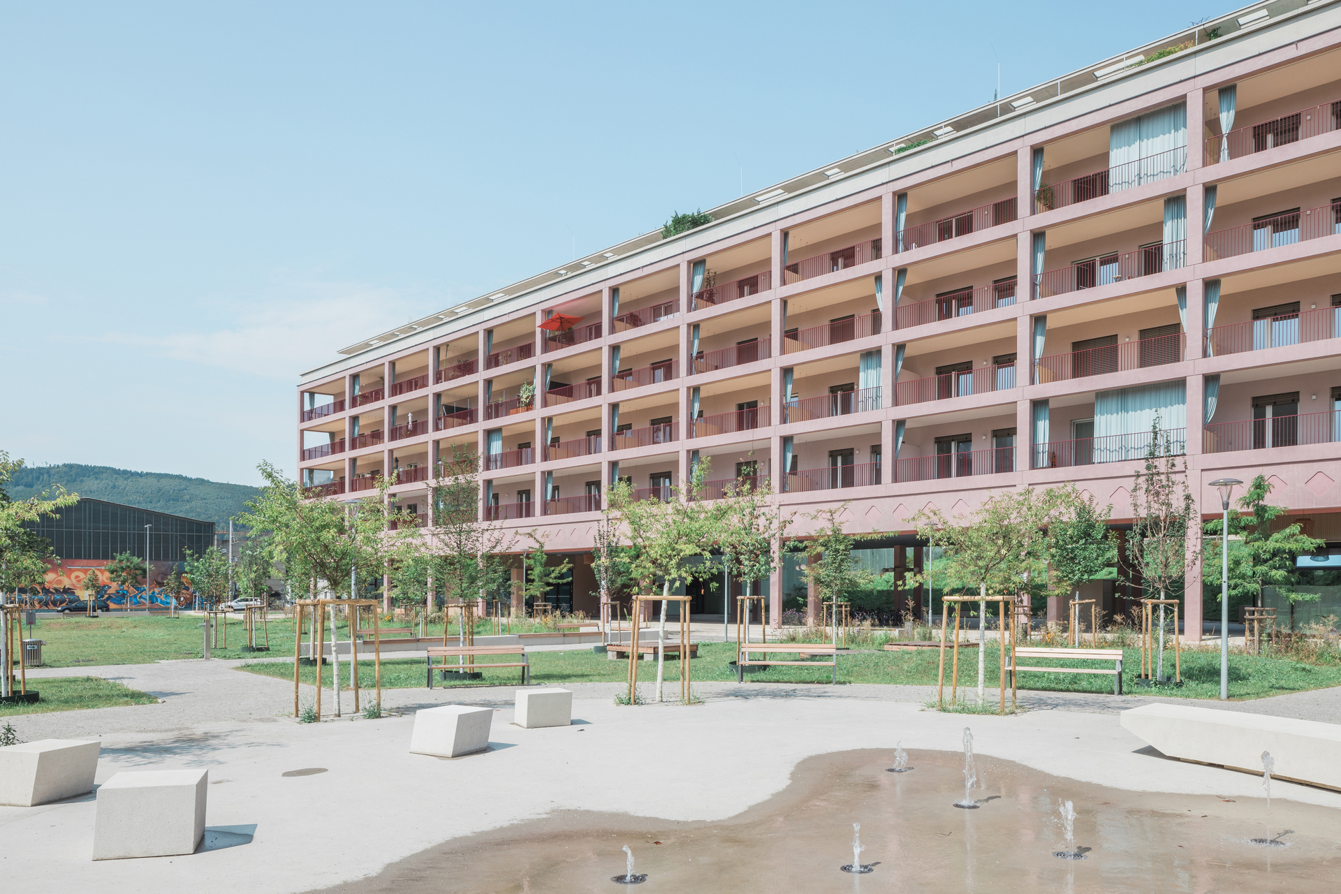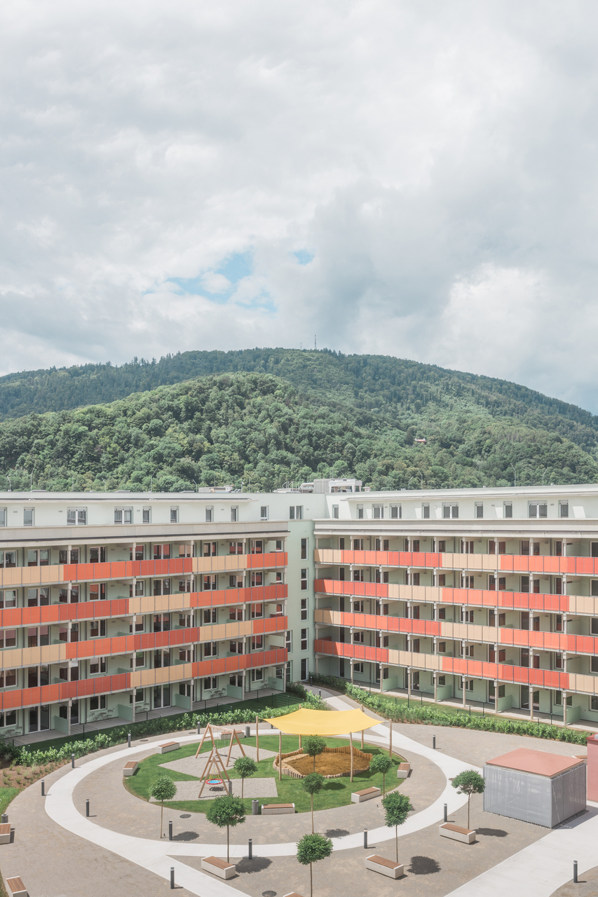 Für das Baufeld Nord der Wohnbau Smart City übernimmt das Quadrat in abgewandelter Form die typische Dimension eines Grazer Blocks aus der Gründerzeit und wird variiert. Es ergibt sich eine klare Differenzierung zwischen dem öffentlichen Straßenraum und einem großzügigen Innenhof. Dieser ist ebenerdig mit dem südlich vorgelagerten öffentlichen Park verbunden. An den „Grenzen“ zwischen dem Innen des Hofs und dem Außen des Parks finden sich gemeinschaftlich genutzte Flächen für Spielen, Kochen, Arbeiten und Weiteres.