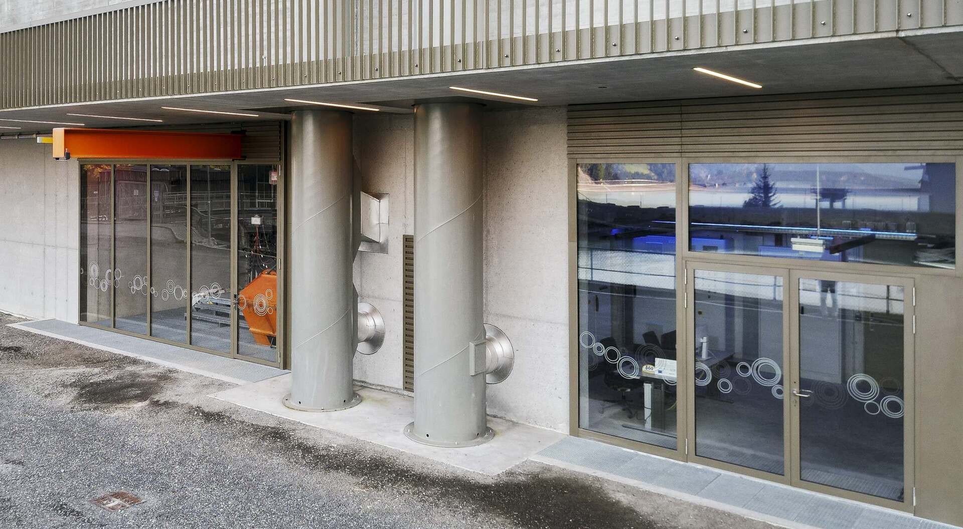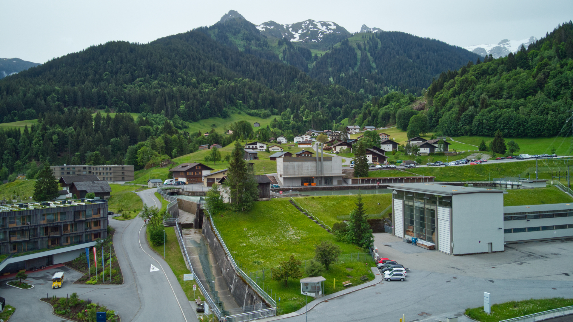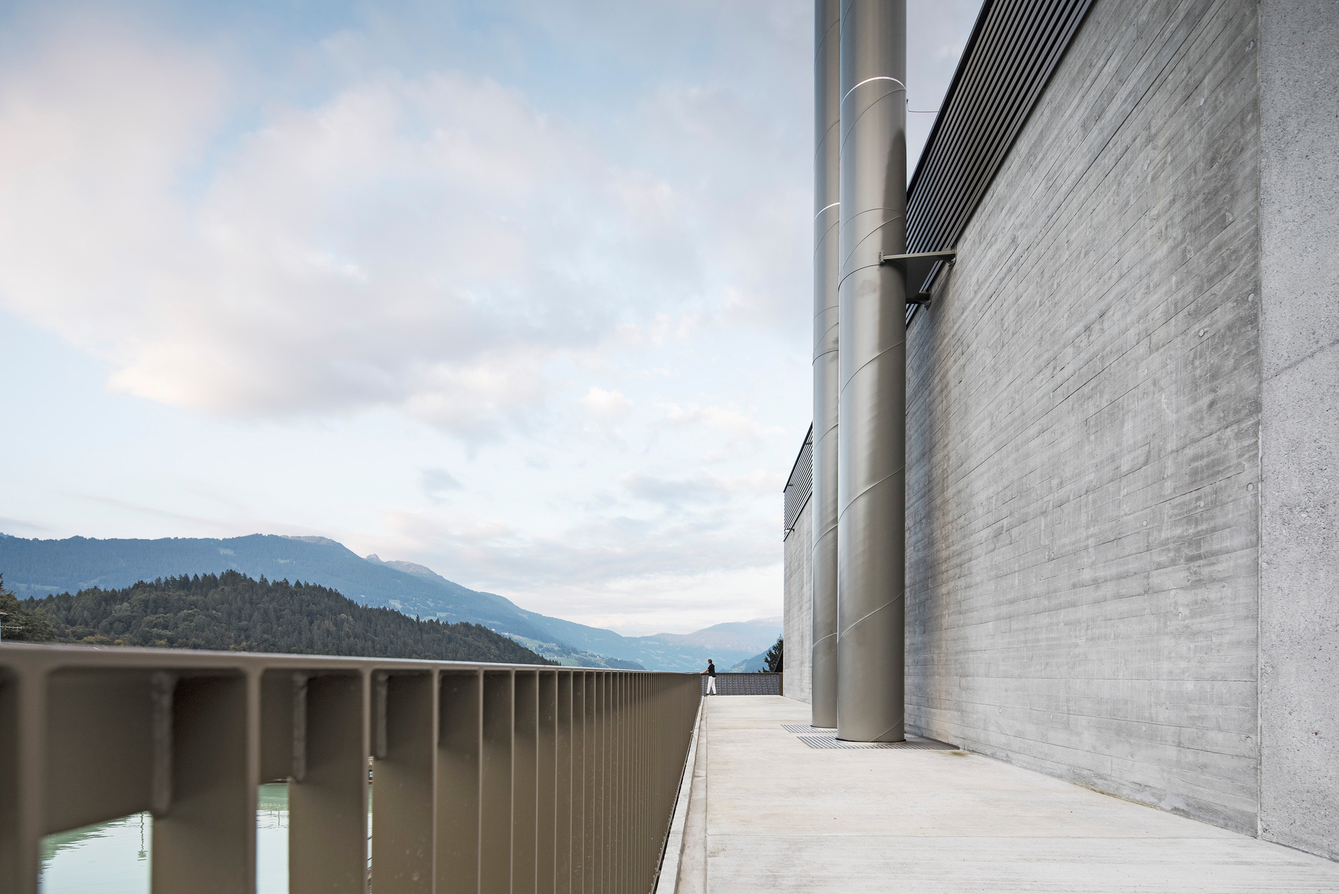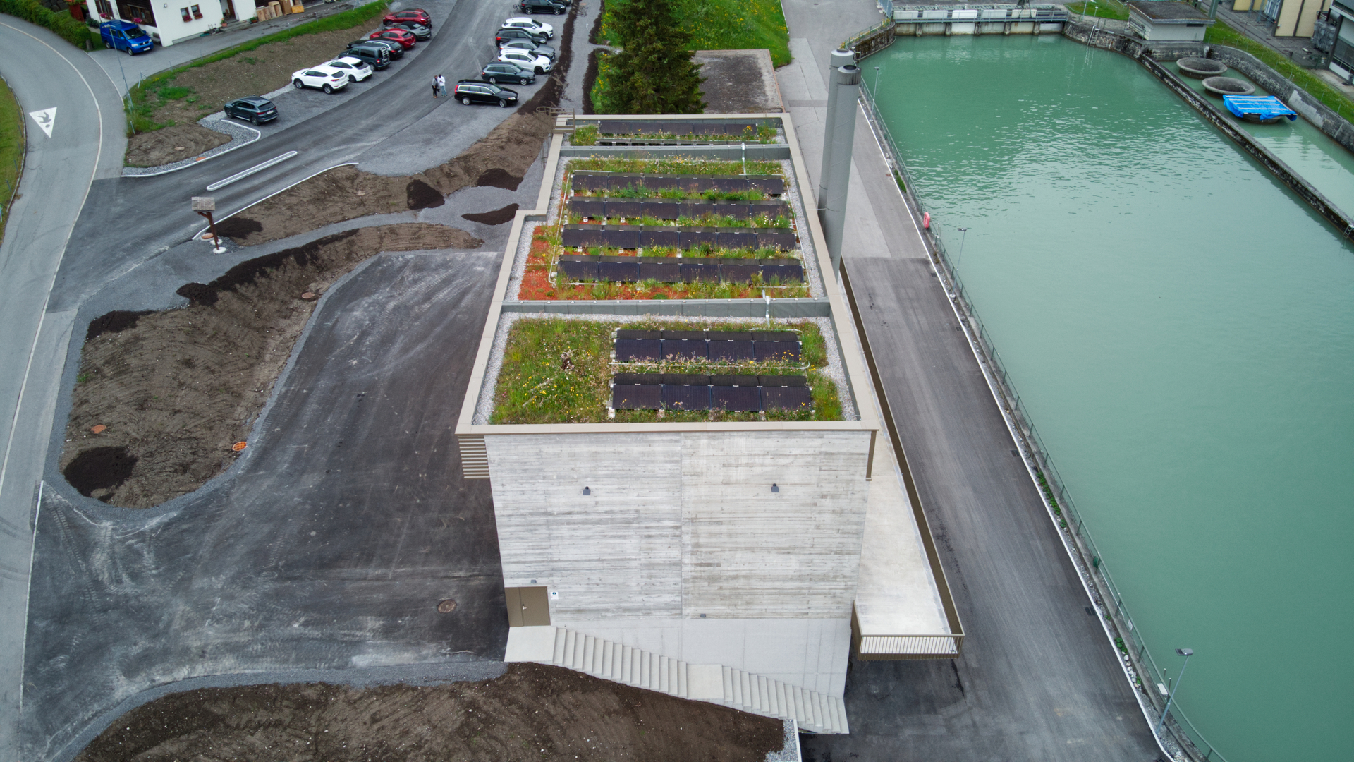 Die besondere Aufgabenstellung des Bauens in den Alpen, die Suche nach einer passenden Kontextualisierung inmitten der Bergwelt des Montafons in diesem Fall, wurde in Material- und Farbgebung berücksichtigt. Die ruhevolle Ästhetik der Berge spiegelt sich in der architektonischen Form wider. Der massive, durch unterschiedliche Oberflächenstrukturen gegliederte Betonkörper – mit einer einzigen Schmuckfarbe für sämtliche Metalloberflächen – greift diesen Charakter atmosphärisch auf und trägt ihn mit. Das durchdachte ökologische Konzept verschränkt das Bauwerk auch auf stofflicher Ebene mit dem Umfeld, indem das Gebäude zum Habitat für standorttypische botanische Raritäten wird. (Text: Tobias Hagleitner, nach einem Text der Architektin)