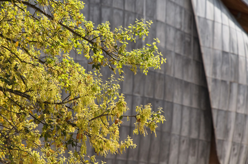 Hell ist es hier, freundlich und ruhig - ja, eine Oase der Stille und des bewusst gestalteten Klangs in dieser lauten Stadt. Die Anlage liegt in einem Garten, der noch fertiggestellt werden und dann wachsen muss. Bestimmend der helle Travertin der Böden, die Mauern aus Backstein und die Dächer, die sich dank einer speziellen Holzkonstruktion über die einzelnen Gebäude wölben; geht man aussen herum, fühlt man sich von ferne an das Bayreuther Festspielhaus erinnert. Die Dächer übrigens sind aus Blei: Anklang an die vielen, aus ebendiesem Material gefertigten Kuppeln der Ewigen Stadt und zugleich Abschirmung gegen die unerwünschten Handy-Strahlen - tatsächlich steht das Mobiltelefon im Innern der Säle auf null. Wer durch das Foyer wandelt, und hier wandelt zu jeder Tageszeit jemand durchs Foyer, sieht durch grosse Fenster ins Freie, auf der einen Seite in den Park, auf der anderen in die «cavea», das im Vergleich zu den Konzertsälen etwas vertieft angelegte (halbe) Amphitheater für maximal 3000 Personen, das im Sommer Freiluftveranstaltungen bis hin zu Rockkonzerten aufnehmen soll.