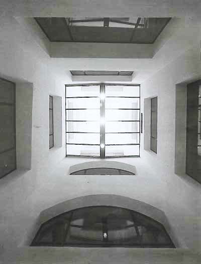 Im Haus Judengasse 7 bildet die alte, bucklige Feuermauer mit der in den Raum gestellten Stahlbetonstiege eine 18 Meter hohe und weniger als einen Meter breite „Schlucht“. Das Licht dringt durch die entsprechend lange und schmal in die Dachhaut eingeschnittene Oberlichte. In dieser Begegnung von erhaltener historischer Bausubstanz und einem kraftvoll gestalteten Stiegenelement wurde mehr als ein verträgliches Miteinander erreicht. Sie vermag - frei von erzwungener Anpassung und formaler Aggressivität – im Sinne einer dialektischen Wechselbeziehung höhere Qualitäten zu erreichen als ihre einzelnen Teile.