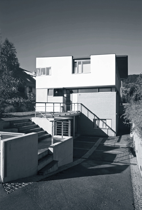 Sorgfältige Planung macht sich bei vielen Häusern schon beim Entree bemerkbar. Wie bei jenem Einfamilienhaus, das Christa Buchinger und Judith Eiblmayr mit viel Sinn für den Ort und seine Bewohner in eine Mödlinger Siedlungsgegend gesetzt haben. Der Zugang ist leicht verschwenkt. Nach einer kleinen Stufenanlage, an der man sich auch niederlassen kann, führt auf einer Galerie über dem tieferliegenden Vorhof ein steingepflasterter Weg zum Eingang.