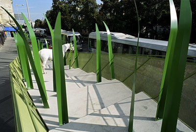 Durch eine differenzierte Beleuchtung soll sich die Fassade in den Dämmerungs- und Nachtstunden immer wieder verändern. Unter tags wird sie durch die bunten Buchstaben und Repros auf sich aufmerksam machen.