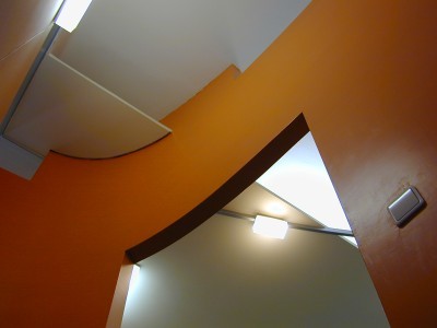 Das an der Decke geführte, gekrümmte Lichtsystem umfängt den gesamten Grundriss und stellt den optischen Zusammenhang zwischen den einzelnen Raumgruppen her. Die Kanzlei wird geradlinig von einer abgehängten Decke durchbrochen, welche für die teilweise indirekte Lichtführung und den Einbau einer Klimaanlage verwendet wird.