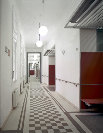 Die wesentliche Neuerung stellte jedoch die Integrierung einer eigenen neurologischen Abteilung dar. Durch die zunehmende Spezifizierung in Diagnostik und Therapie erfolgte vor einigen Jahren die Trennung des Faches Psychiatrie und Neurologie in zwei eigenständige Disziplinen. Gerade auf der Baumgartner Höhe war der Bedarf einer Neurologie besonders stark gegeben, um sowohl Psychiatrie wie Orthopädie unmittelbar ergänzen zu können. Ein Synergieeffekt, den der Wiener Krankenanstaltenverbund auch insofern anstrebte, als zwecks Rationalisierung kleine Spitäler in Wien geschlossen und deren Abteilungen in den Verbund mit bestehender Infrastruktur gebracht werden und das Neurologische Krankenhaus Maria-Theresien-Schlös- sel in Döbling so neu verortet werden sollten. Die denkmalgeschützten Gebäude mit ihrer großzügigen Kubatur waren ideal für den Platzbedarf der neuen Nutzer, in drei benachbarten Pavillons konnte das gewünschte Raumprogramm umgesetzt werden.