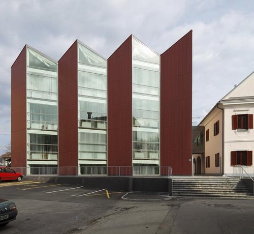 • In their design for a library building in Grosuplje (SI), A.biro respond to a mixed context with an equally heterogeneous building