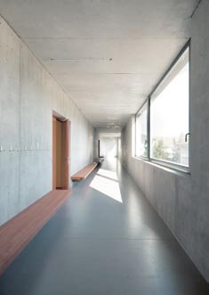 Das Schulhaus Eichhölzli in Glattfelden ist ein typisches Landschulhaus aus den Sechzigerjahren: grauer Putz und Beton, etwas Sichtbackstein und darauf ein flach geneigtes Satteldach. Die Turnhalle folgte etwas später und versuchte, sich mehr schlecht als recht an das Schulhaus anzulehnen. Die jüngste, winkelförmige Erweiterung mit Schulräumen und einer Turnhalle definiert mit dem Altbau einen Hof und schliesst die Anlage gegen das Wohnquartier ab. Architekt Peter Kunz entwarf ein einfaches, kostengünstiges Volumen. Der Klassentrakt zählt drei Geschosse, die angebaute Turnhalle ist zur Hälfte im Boden versenkt. Wer Kunz’ Bauten kennt, für den ist das Schulhaus wie ein umgekehrter Handschuh: Den sonst üblichen Beton sucht man am Äussern vergeblich; ein brauner Putz überzieht die Fassaden. Im Innern jedoch ist er wieder präsent, der Sichtbeton an Boden, Decken und Wänden der Korridore. In frischem Kontrast dazu steht die farbliche Gestaltung von Jörg Niederberger, die mit einem kräftigen Orange in der offenen Vorhalle beginnt. In jedem Geschoss zeigen die Zimmer eine andere Farbe.hochparterre, Mi., 2007.08.15