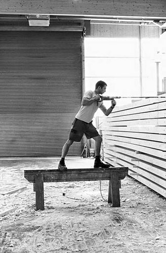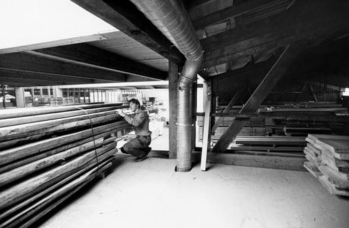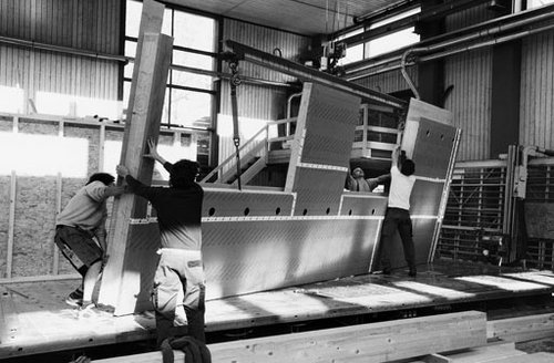 Die gewaltige Dimension des Werks in Vorderreuthe lässt sich auch an der Anzahl und Art der eingesetzten Maschinen ermessen. Vor zehn Jahren wurde die erste, vor kurzem die dritte CNC-Fräse aufgestellt, sodass für einen internationalen Markt präzise Systemkomponenten in großen Stückzahlen produziert werden können. Im Unternehmen von Anton K. arbeiten CNC-geschulte Zimmerer, Absolventen von Fachhochschulen, Maschinenbauer, angelernte Arbeiter. Als Industriekonzern agiert er als reiner Zulieferer, hält den Industrie- und Projektbereich konsequent auseinander. Zum Projektbereich gehört z.B. ein Hochregallager aus Holz, das sich gerade in korrisionsgefährdeten Funktionszusammenhängen (Stichwort Salzlager, mehrgeschossige Bootsgarage) gegen den Stahlbau auch ökonomisch behaupten kann. Und eben diese klar getrennte Koexistenz von industrieller Fertigung europaweit vertriebener Komponenten und dem Projektbereich erweist sich als richtig, wenn es um den vielbeschworenen Blick auf das konstruktive Ganze geht. Denn auf diesen kommt es in einer hochdifferenzierten »Kultur des Handwerks« letztlich an. Nur wenn selbst in der Anonymität der fragmentierten Fertigung das Verständnis für den konstruktiven Gesamtzusammenhang präsent bleibt, kann der CNC-geschulte Zimmerer sein Werkzeug bewusst einsetzen, anstatt es in entfremdeter Perfektion einfach nur zu bedienen.zuschnitt, Sa., 2007.06.16