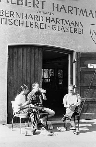 In der Werkstatt von Michael K. stehen viele Maschinen, aber eine CNC-Fräse wird man vergeblich suchen. Es ist eine bewusste Entscheidung, den Betrieb in überschaubaren Dimensionen zu halten (bei Michael K. arbeiten 16 Zimmerer und fünf Tischler), sich nicht allzu tief in den Bereich der industriellen Fertigung hineinzuarbeiten. Seine Mitarbeiter und Lehrlinge stammen alle aus der Umgebung, bei ihm werden auch Fachleute ausgebildet, die dann später z.B. im Betrieb seines Großcousins Anton K. (geb. 1949) in Vorderreuthe einen Arbeitsplatz finden.