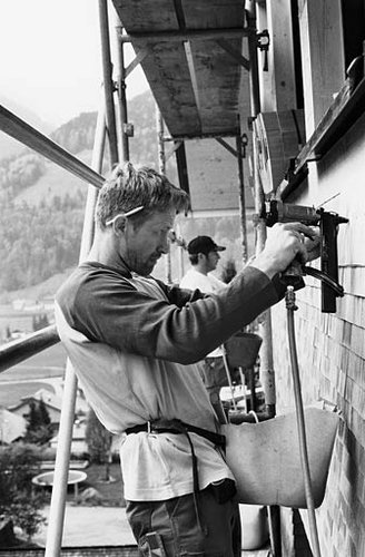 Während er also eine relativ junge Erscheinung ist, verkörpert der Handwerker Tradition und Althergebrachtes. Ein Sparren ist immer noch ein Sparren, auch wenn er mittlerweile vielleicht schichtverleimt ist, ein Ziegel immer noch ein Ziegel, auch wenn er statt aus Ton aus Beton oder Faserzement ist. Gemauert wird nach wie vor von unten nach oben und der Putz kommt am Schluss auf die Wand bzw. auf die Perimeterdämmung. Die Handgriffe im Handwerk sind weitgehend noch dieselben wie ehedem, vor allem aber zeichnet sich der Handwerker nach wie vor dadurch aus, dass er auf ein Problem zugreift, um es möglichst umgehend konkret zu lösen. Ich bin immer wieder beeindruckt, wie einfach sich manches, das man während Stunden im Büro wälzte, erledigen lässt, wenn man am Bau mit dem Handwerker spricht.
