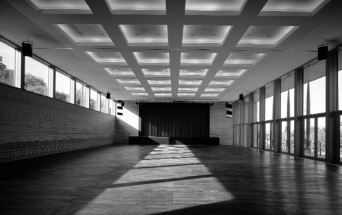 Die horizontale Form des Gebäudes ermöglicht einen großen Dachgarten, während unterhalb der großen Überstände ein Platz für unterschiedliche Nutzungen entsteht. Unterirdisch befinden sich eine Tiefgarage, die Anlieferung für Lastwagen, die Bühne, die Umkleiden sowie die Restaurantküche. In einem Atrium in der Mitte vom Gebäude steigt ein imposantes Treppenhaus von der Straßenebene bis zu einem 700 Quadratmeter großen Mehrzwecksaal im 1. Obergeschoss. Eine Rampe führt weiter zum Foyer im 2.Obergeschoss. Dort ist ein großes Panoramafenster vorgesehen, von dem aus man einen herrlichen Blick über die Stadt und den Fluss haben wird.