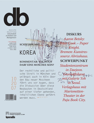 Abseits des Baubooms in China ist auch in Südkorea eine neue Zeit der Architektur angebrochen. Unser Autor Mathias Remmele war vor Ort und hat eine Fülle von Eindrücken, Geschichten, Erkenntnissen und Projekten mitgebracht. Unter Berücksichtigung verschiedener Bauaufgaben gewährt das vorliegende Heft einen Einblick in das noch relativ unbekannte »Architekturland« Korea und dokumentiert bemerkenswerte Positionen einer jungen Architektengeneration und einer Gesellschaft im Aufbruch. elp/uk