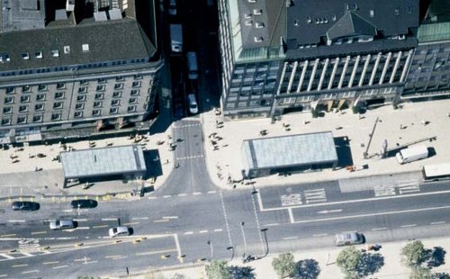 Doch eilen wir nicht auch deshalb so schnell die Treppen hinauf oder hinab, weil in uns, aller Vernunft und Aufgeklärtheit zum Trotz, ein Unbehagen an den künstlichen Höhlen im Erdinneren schlummert? In den Zugangsbauwerken der unterirdischen Bahnhöfe werden wir mit unseren verdrängten Ängsten konfrontiert: »Im Keller verharren die Dunkelheiten Tag und Nacht. Sogar mit dem Leuchter in der Hand sieht der Mensch im Keller die Schatten über die schwarzen Mauern tanzen ... In unserer Zivilisationsepoche, die das gleiche Licht überallhin verbreitet und auch den Keller elektrisch beleuchtet, geht man nicht mehr mit dem Leuchter in den Keller. Das Unbewusste aber lässt sich nicht zivilisieren.« [1]. Die Verbindung zwischen Tiefe und Erdoberfläche, zwischen Unterwelt und Tageslicht ist ein besonderer Ort. Und so hatte der Hamburger Architekt André Poitiers weit mehr zu gestalten als nur zwei Dächer, Verkaufsflächen und Treppen, als er den Auftrag für neue Zugänge zur U- und S-Bahn am Jungfernstieg erhielt.