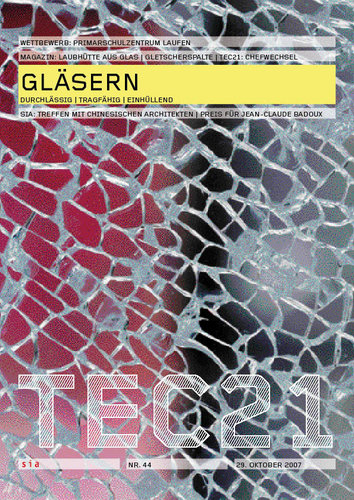 Mehr Glas als vermutet | Daniel Liebeskind: Laubhütte aus Glas | HdM: Gläserne Gletscherspalte | Wechsel in der Chefredaktion von TEC21 | Baufachfrauen in den Zürcher Zünften