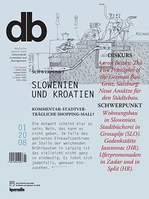 In der Architektur dieser beiden Länder zeigt sich der ungehemmte Drang, nach sozialistisch geprägten Jahrzehnten wieder Anschluss an den Westen, an Mitteleuropa zu finden. Slowenien ist darin dem Nachbarland um einige Jahre voraus, politisch und wirtschaftlich ist dort schon vieles erreicht. Aber auch in Kroatien spiegelt sich die neue Zeit seit der Beendigung des Unabhängigkeitskrieges in bemerkenswerten Bauten vorwiegend junger Büros wider; sie verarbeiten Inspirationen der internationalen Szene, verlieren dabei aber nie den örtlichen Kontext aus den Augen. ~ge