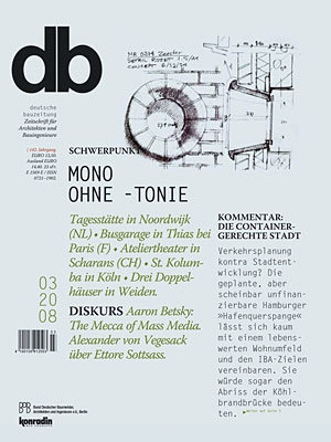 Die Fassaden geben dem Buszentrum einen trügerischen, stillen Anschein, doch nicht umsonst bezeichnen es die Architekten lieber als »Kontrollturm« denn als gewöhnlichen Bürobau: Sämtliche Buslinien im Süden und Osten des Ballungsraumes Paris werden von hier aus gesteuert, und wenn am frühen Morgen etwa 800 Busfahrer den Betrieb aufnehmen werden die Flure selbst zum Schauplatz des Großstadtverkehrs. Im Übrigen ist auch der Grundriss im Inneren des grauen Monolithen noch nicht ganz zur Ruhe gekommen. Schon während der Bauzeit mussten die Architekten laufend Änderungswünsche des Bauherrn einarbeiten und selbst nach der Inbetriebnahme entwickelt die RATP ihr Raumprogramm beständig weiter.db, So., 2008.03.02