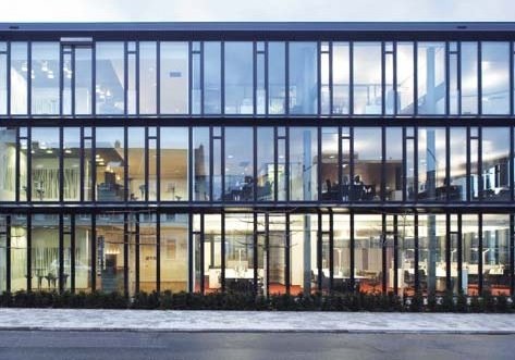 Das Unternehmen ist auf Wachstum angelegt. Wachstum wird hier aber nicht zwingend als bauliche Erweiterung verstanden, auch wenn der zum Bürokomplex gehörende Park im Westen des Neubaus den Platz dazu bieten würde. Vielmehr bezieht es sich auf die innere Organisation, denn schon jetzt gibt es »10 Plätze für 11 Mitarbeiter« – nur selten sind alle Angestellten vor Ort, zudem bieten flexible Raumbelegungen Ausweichmöglichkeiten. Die Zahl »10 X« könnte also noch erhöht werden.