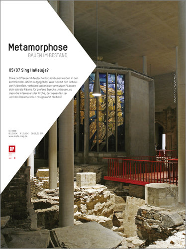 Für die Amtskirche spielen architektonische Belange nicht immer die Rolle, die sie verdient hätten. Die Frage, was mit Gebäuden geschehen soll, die aus der normalen gottesdienstlichen Nutzung fallen, entscheidet sie bislang weniger nach baukünstlerischen als nach kirchlichen Kriterien. In dieser Ausgabe stellen wir daher eine Bandbreite verschiedener Nachnutzungen vor, mit denen unserer Ansicht nach nicht nur die Kirche, sondern auch die Denkmalpflege und die Architekturkritik leben können: