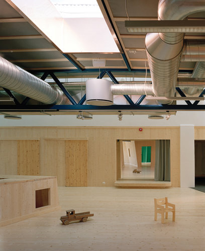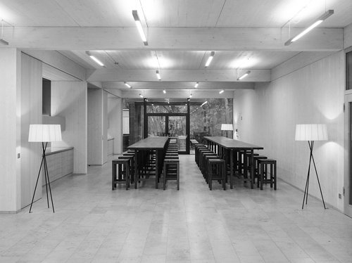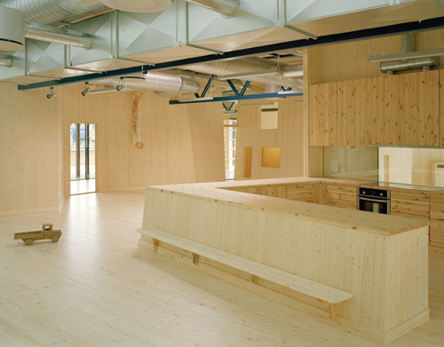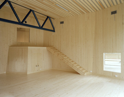 Die zweite Tendenz ist noch interessanter: Die Platten-Tektonik des aktuellen Holzbaus wird ausschliesslich strukturell gelesen werden, und nicht mehr materiell. Was im Vorfeld als Kartonage bezeichnet wurde, das wird sich architektonisch in der Abstraktion äussern. Holzplatten werden als »Kunststoff« eine ähnliche Position einnehmen wie der homogene Beton im Massivbau, der strukturell alle tektonischen Elemente eines Bauwerks besetzen kann, ohne jemals materiell zum Ausdruck zu gelangen.