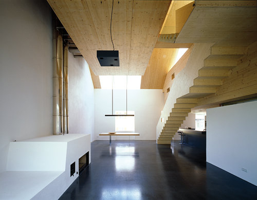 Die wohnliche Adaptierung eines Dachbodens im städtischen Gefüge birgt wenig Spektakuläres. Dass daraus ein Werk von bemerkenswerter praktischer und konstruktiver Innovation hervorgehen kann, stellten der Innsbrucker Architekt Daniel Fügenschuh und sein Bauherr eindrücklich unter Beweis. In einem spannungsvollen Wechselspiel aus Leere und Inhalt entstanden, auf unterschiedliche Raumebenen verteilt, konzentrierte Wohnbereiche, die in ihrer Komposition zu einem schlüssigen Ensemble verschmelzen. Der imposante Dachraum des historischen Stadthauses aus der Gründerzeit inspirierte den jungen Planer bereits von Beginn der Entwurfsphase an zu größtmöglicher räumlicher Offenheit. Als erste Konsequenz daraus öffnete er die darunterliegende Wohnung des Auftraggebers nach oben hin und integrierte diese in das neue Raumkonzept. Die zusätzliche Wohnfläche sollte zur Gänze in eigenständigen, frei schwebenden Baukörpern untergebracht werden.