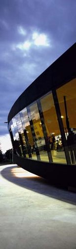 Was den Bau in die architektonische Oberliga hebt, ist seine konzeptionelle Stringenz und seine gestalterische Präzision. OFIS arhitekti schaffen es immer wieder, auch mit preiswerten Standardmaterialien ästhetisch hochwertige Oberflächen herzustellen und im besten Sinne »durchgestylte« Erscheinungsbilder zu erzeugen. Sie bearbeiten ihre Aufträge schon fast mehr aus Gewohnheit denn aus der Not heraus so, als stünde nahezu kein Budget zur Verfügung. Mitunter handeln sie sich dadurch auch Unlösbares ein: So ergab sich beispielsweise aus der Kombination gekrümmter Dachflächen mit orthogonalen Tragstrukturen eine problematische Geometrie, die weder bei der beleuchteten Dachuntersicht noch an den Endpunkten des Umgangs gestalterisch zufriedenstellend in den Griff zu bekommen war.