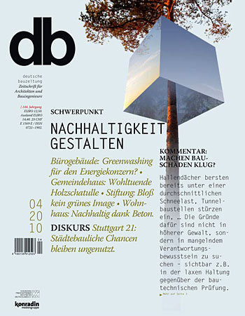 Ende 2006 starteten wir in der db mit der Rubrik Energie, in der in regelmäßigen Abständen energieeffiziente Gebäude vorgestellt werden. Ähnlich lange schon boomt das Thema Energieeffizienz in den Medien, neue Architekturzeitschriften und Gesetze entstanden, »grüne« Bücher wurden geboren. Dabei wird der Begriff Nachhaltigkeit in Bezug auf das Bauen immer häufiger verwendet, aber auch missbraucht. Wohl wissend, dass Gütesiegel allein keine Qualitätsmaßstäbe für Nachhaltigkeit und Beständigkeit eines Bauwerks sind und die Definitionen für nachhaltiges Bauen weit auseinanderklaffen, haben wir verschiedene Architekten und Ingenieure nach ihrem Verständnis von nachhaltigem Bauen befragt (S. 30/31).