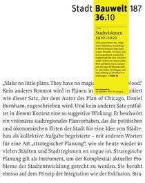 Berlin 1910: Mit der Gründung der Bauwelt und der „Allgemeinen Städtebau-Ausstellung“ gehen von der Spree zwei entscheidende Impulse für die Fachwelt aus. Beide Jubiläen sind uns Anlass für den Blick nach vorn: Während die Bauwelt sich mit ihrem Jubiläumsheft im November architektonischen Vi­sio­­nen in Europa zuwenden wird, widmet sich diese Stadtbauwelt vier Städten, die 1910 wie auch 2010 Wegweisendes zu bieten haben: Berlin, Paris, London und Chicago.